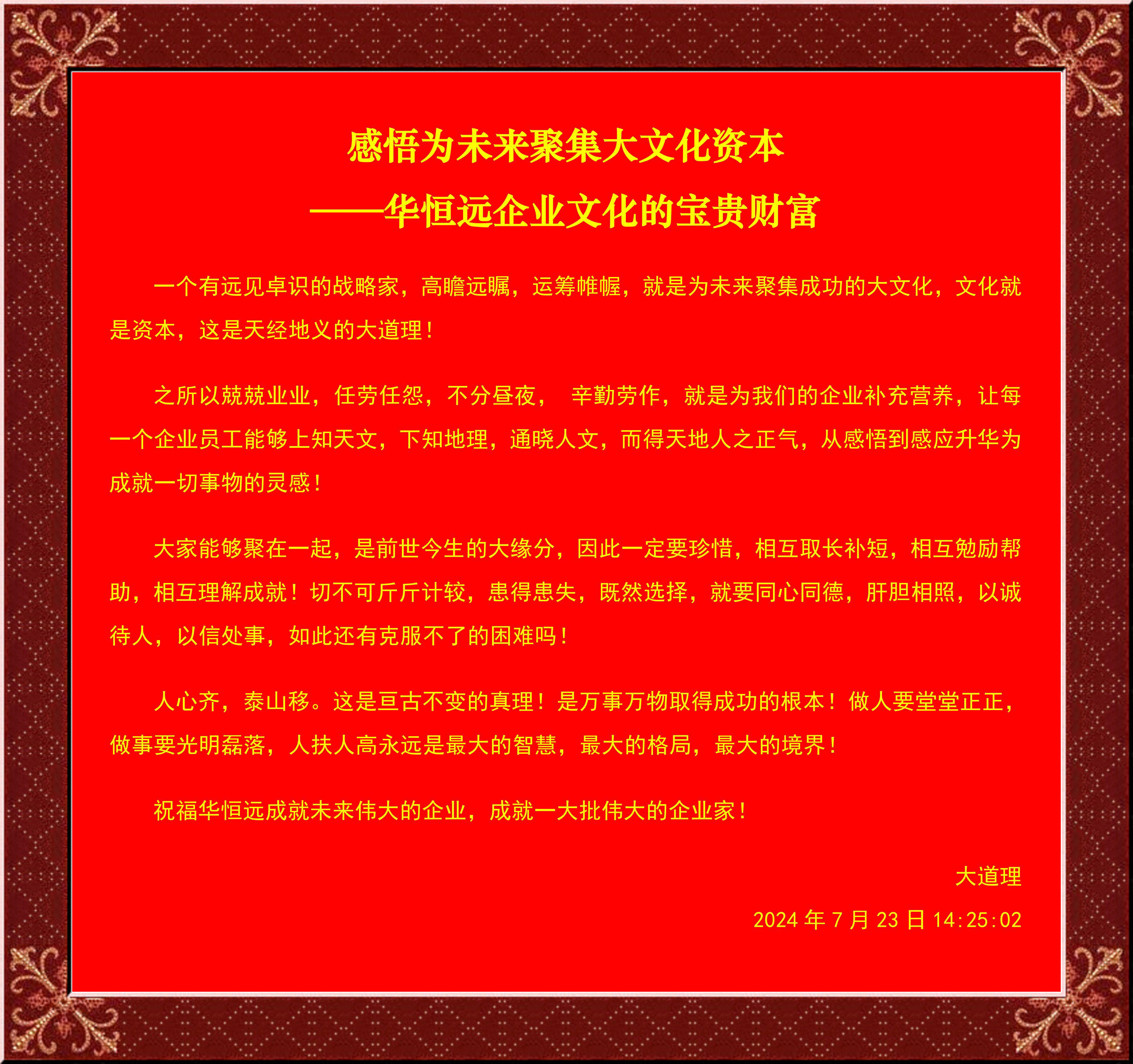 祝福華恒遠(yuǎn)成就未來(lái)偉大的企業(yè),成就一大批偉大的企業(yè)家!