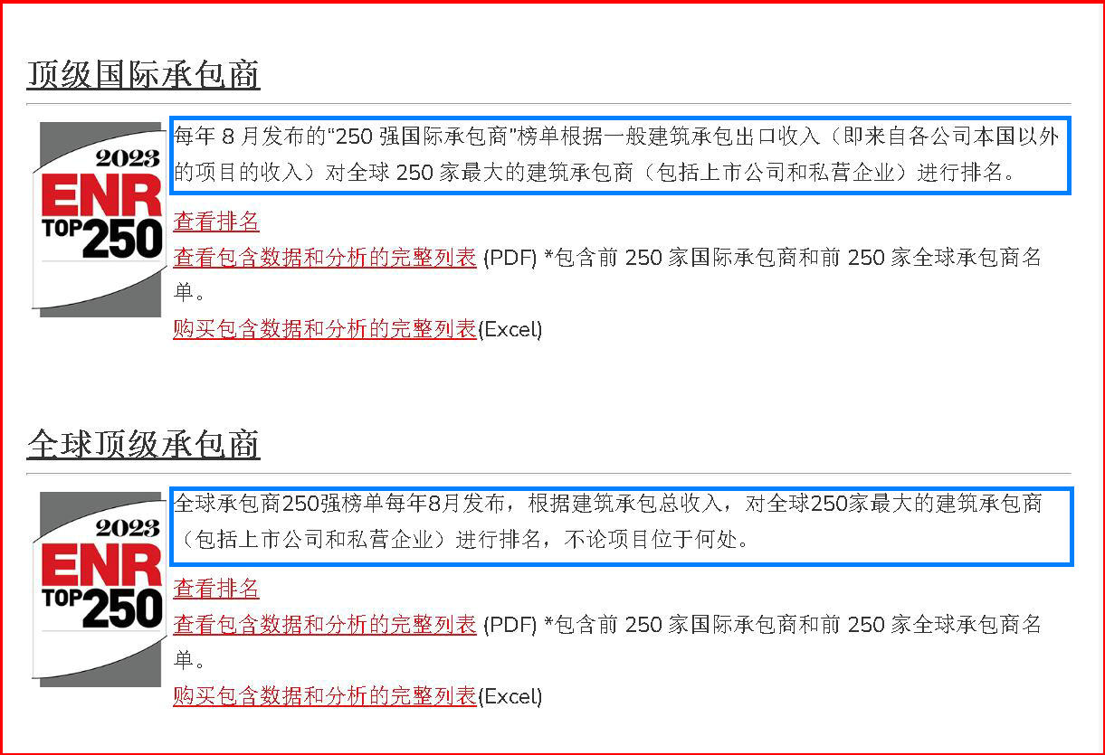 【行業(yè)資料】2023 年度 ENR 全球承包商 250 強(qiáng)和國(guó)際承包商250強(qiáng)中的中國(guó)內(nèi)地企業(yè)