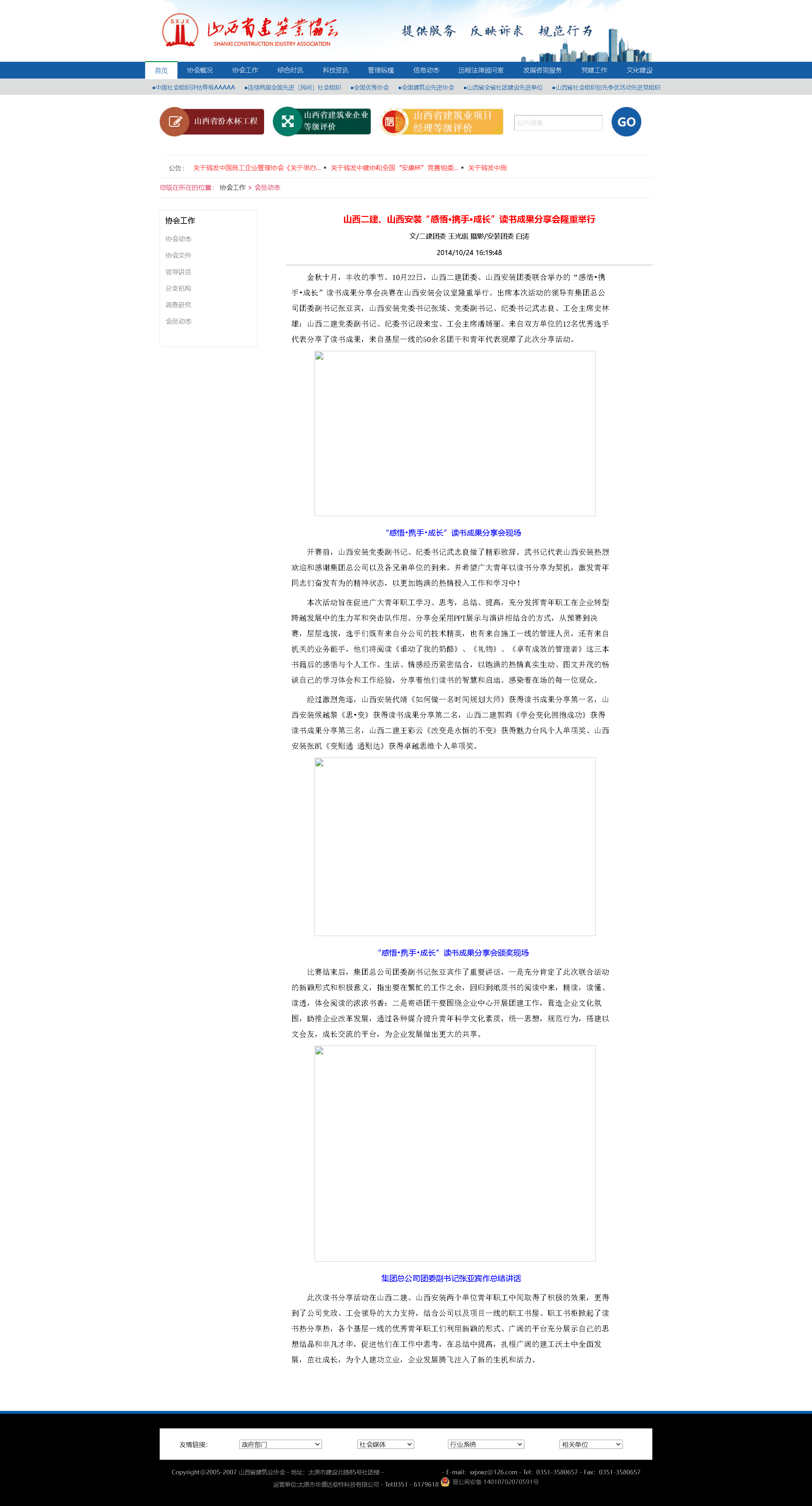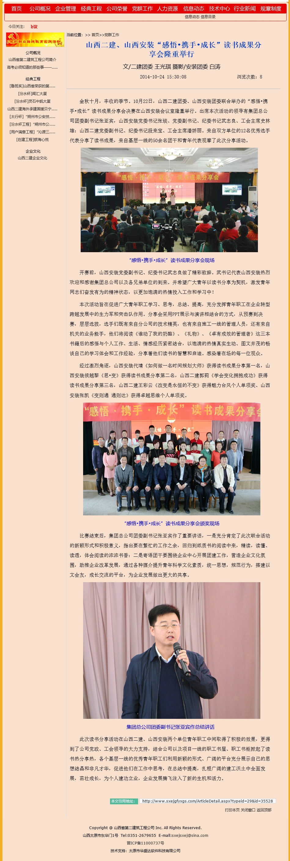 此次讀書分享活動(dòng)在山西二建、山西安裝兩個(gè)單位青年職工中間取得了積極的效果,更得到了公司黨政、工會(huì)領(lǐng)導(dǎo)的大力支持,結(jié)合公司以及項(xiàng)目一線的職工書屋、職工書柜掀起了讀書熱分享熱,各個(gè)基層一線的優(yōu)秀青年職工們利用新穎的形式、廣闊的平臺(tái)充分展示自己的思想結(jié)晶和非凡才華,促進(jìn)他們?cè)诠ぷ髦兴伎迹诳偨Y(jié)中提高,扎根廣闊的建工沃土中全面發(fā)展,茁壯成長(zhǎng),為個(gè)人建功立業(yè),企業(yè)發(fā)展騰飛注入了新的生機(jī)和活力。