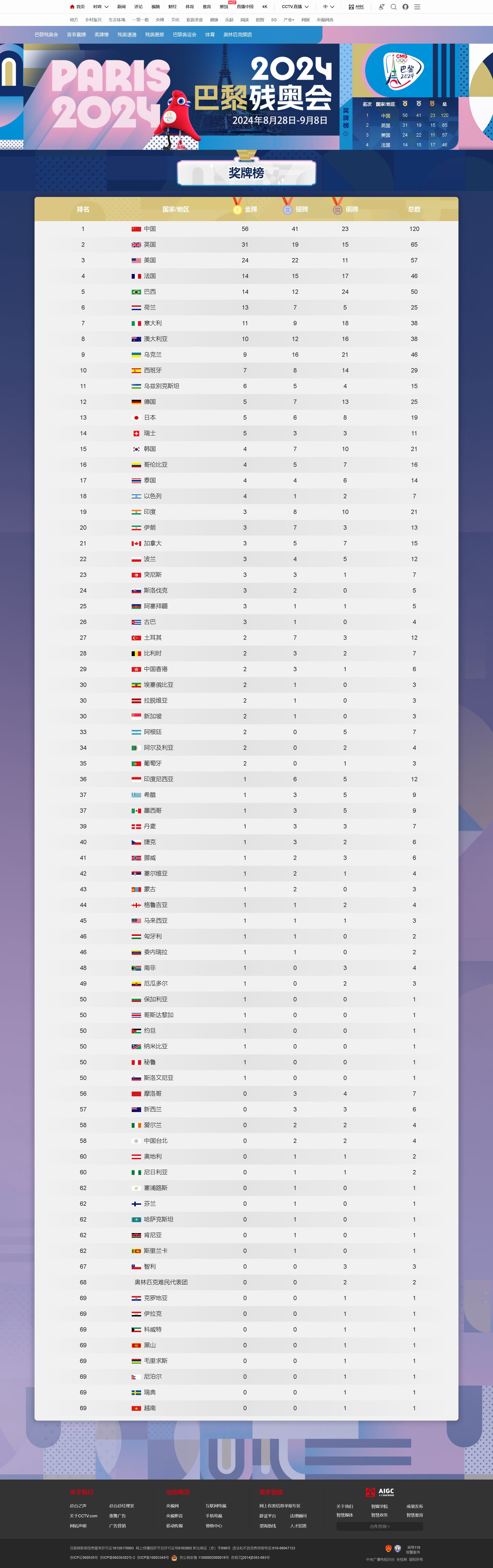 2024年巴黎殘奧會(huì):中國代表團(tuán)獎(jiǎng)牌得主匯總