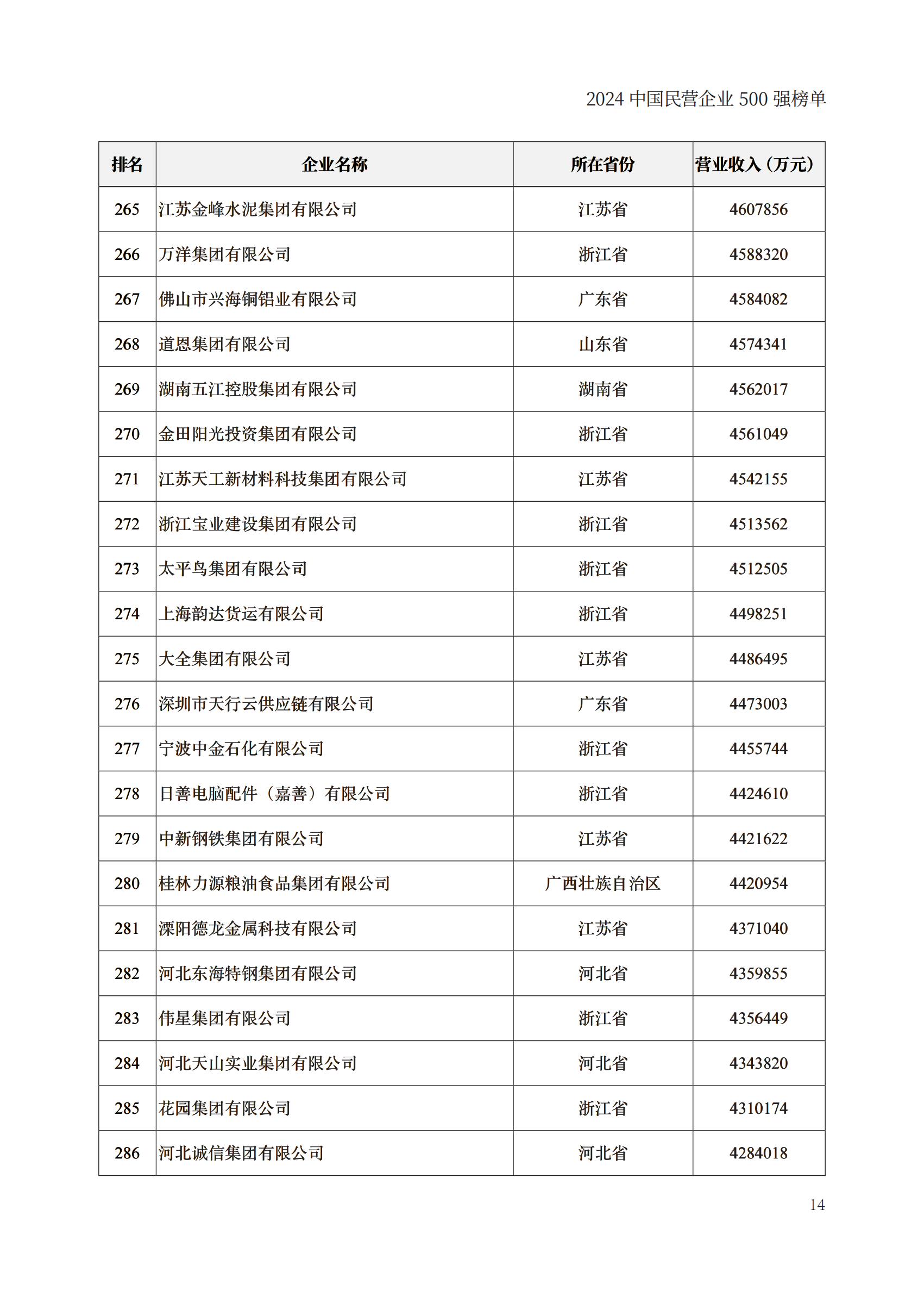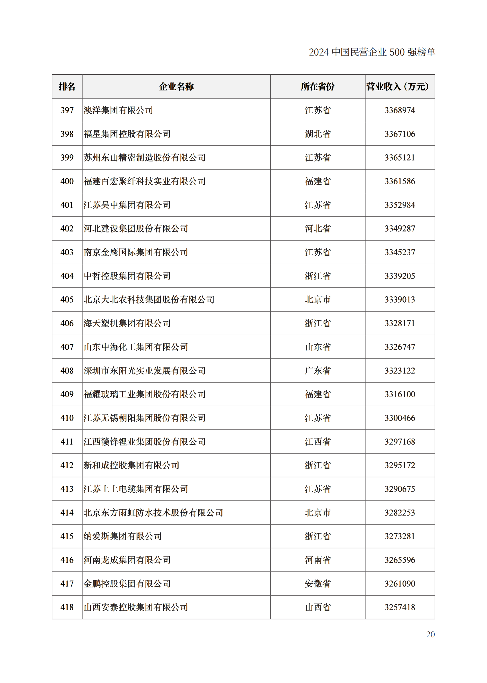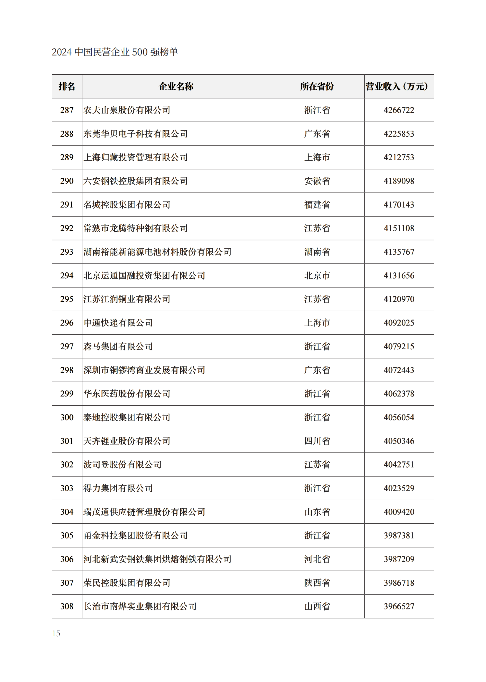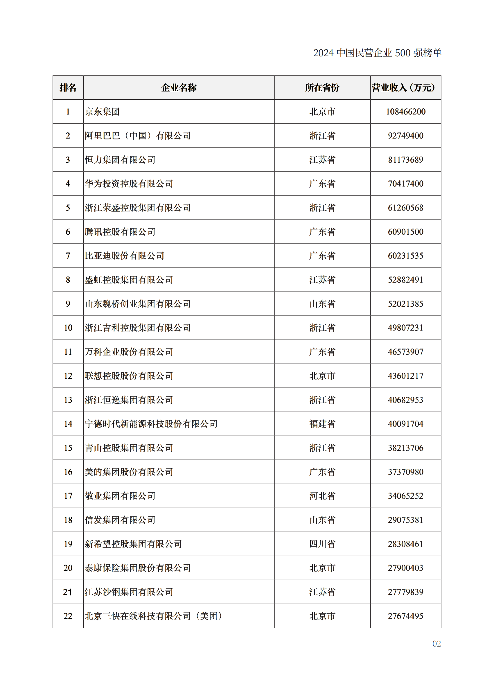 【行業(yè)動態(tài)】2024中國民營企業(yè)500強 制造業(yè)民營企業(yè)500強 服務業(yè)民營企業(yè)100強