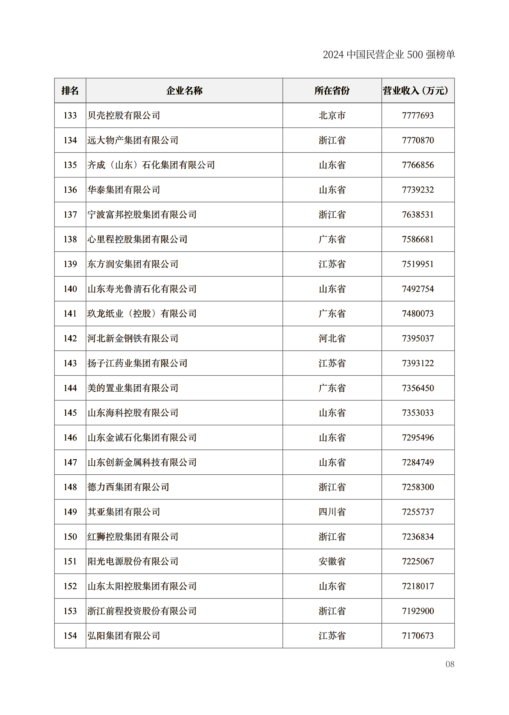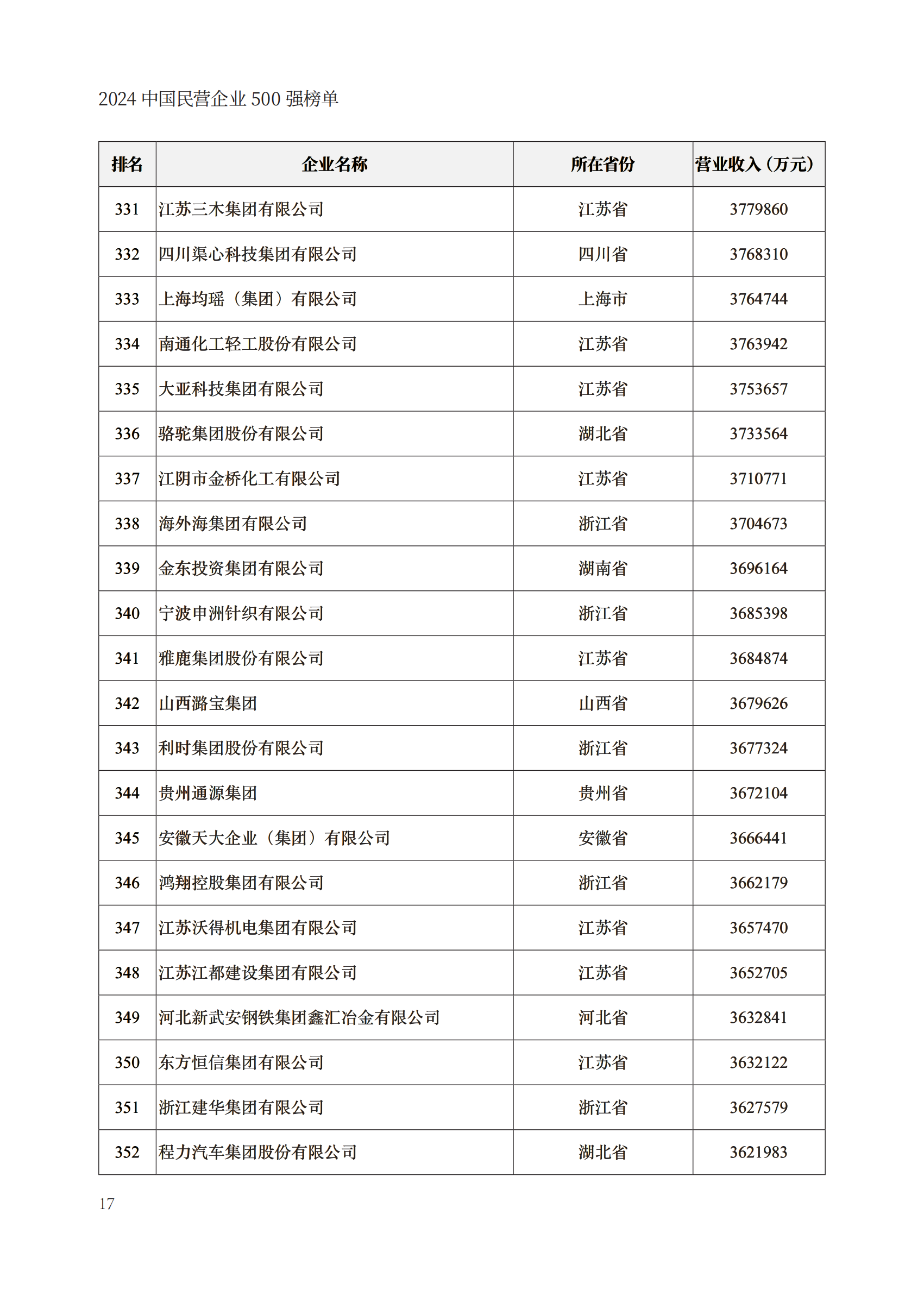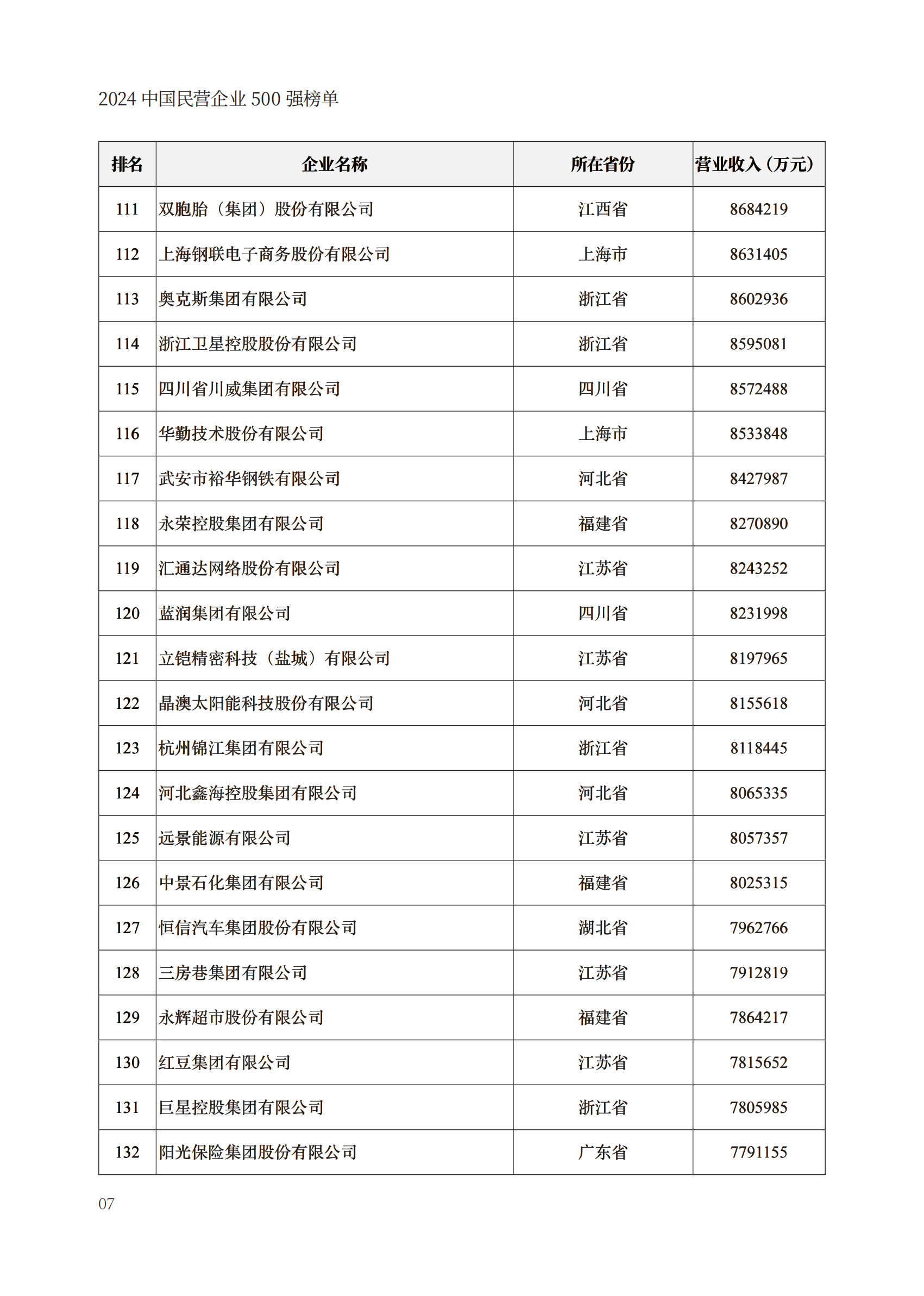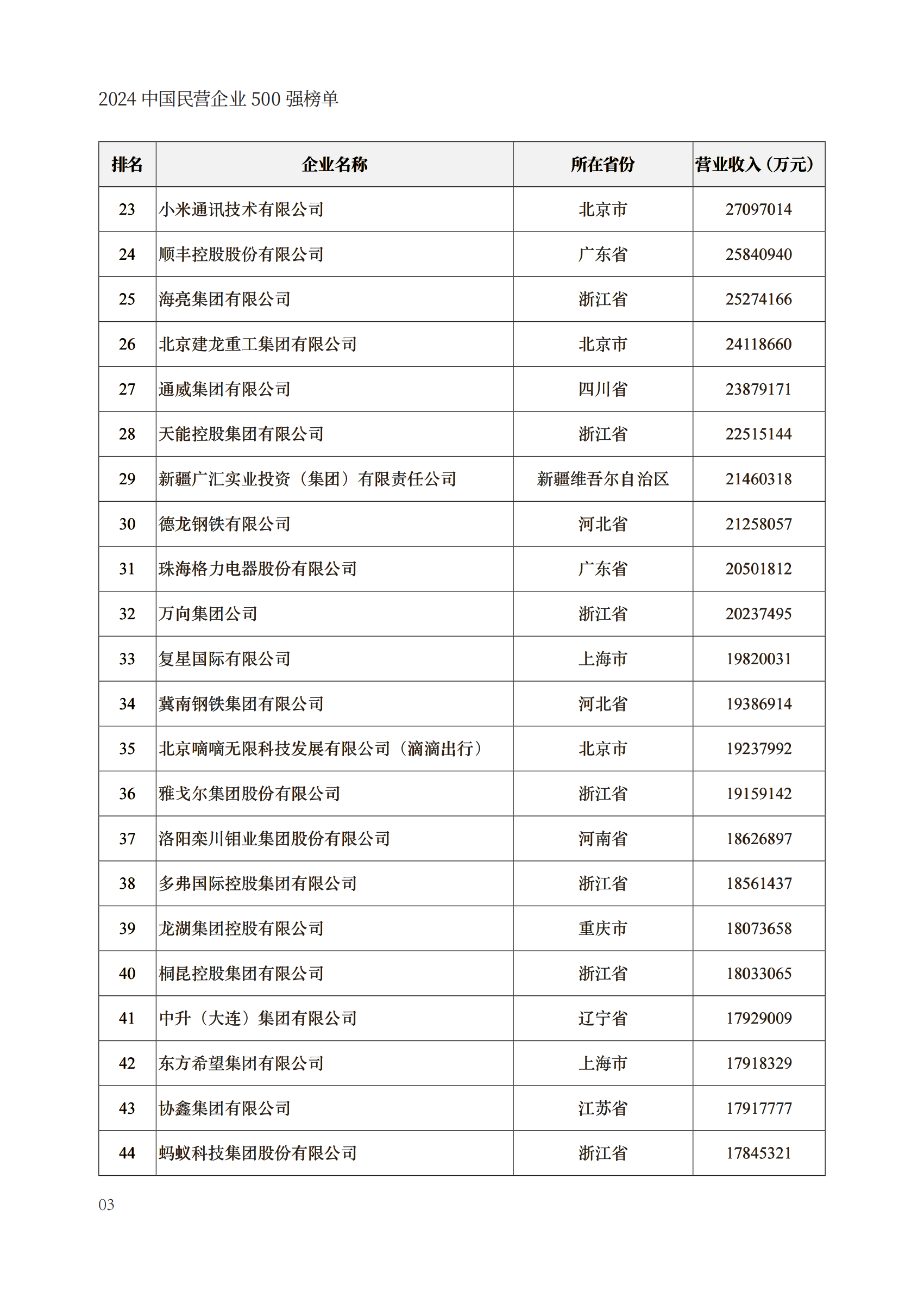 【行業(yè)動態(tài)】2024中國民營企業(yè)500強 制造業(yè)民營企業(yè)500強 服務業(yè)民營企業(yè)100強