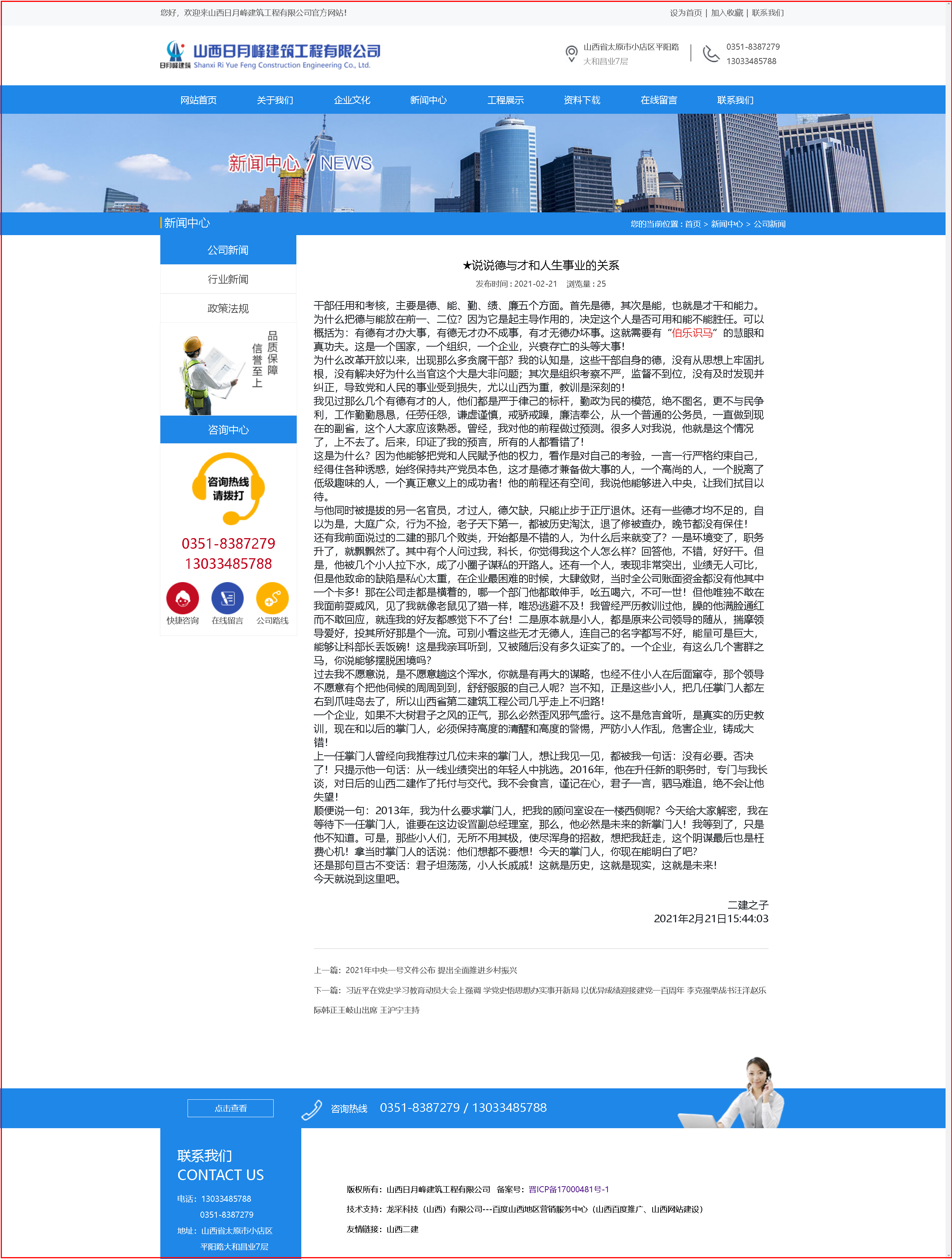 你注意到了沒(méi)有?華恒遠(yuǎn)的網(wǎng)站與過(guò)去山西二建的網(wǎng)站外觀是不是如出一爐?是的,完全一樣!因?yàn)樯轿鞫ㄊ俏业?,我是她忠誠(chéng)的兒子!當(dāng)然,華恒遠(yuǎn)就是山西二建的化身和繼續(xù)——大道和合大德通天!一件事情百年情節(jié)!