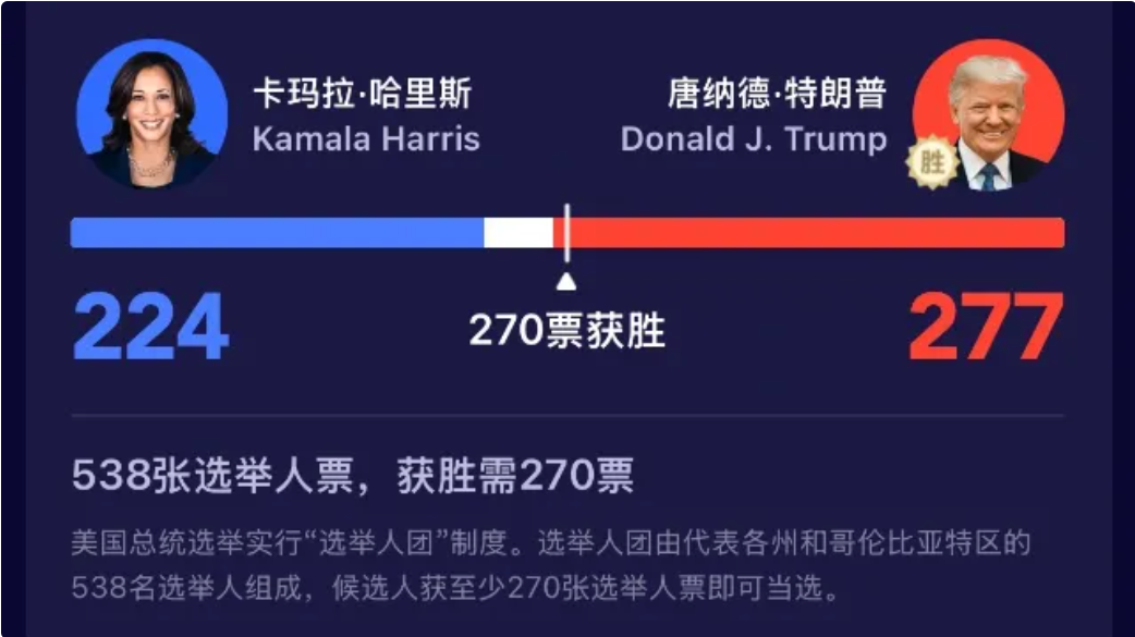《紐約時報》的選舉追蹤器給出特朗普獲勝的概率為 84%,而《華盛頓郵報》的預測則表示,特朗普有可能在選舉團人選舉中占優(yōu)勢。