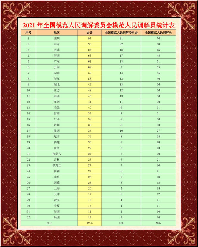 司法部關(guān)于表彰全國(guó)模范人民調(diào)解委員會(huì)模范人民調(diào)解員的決定