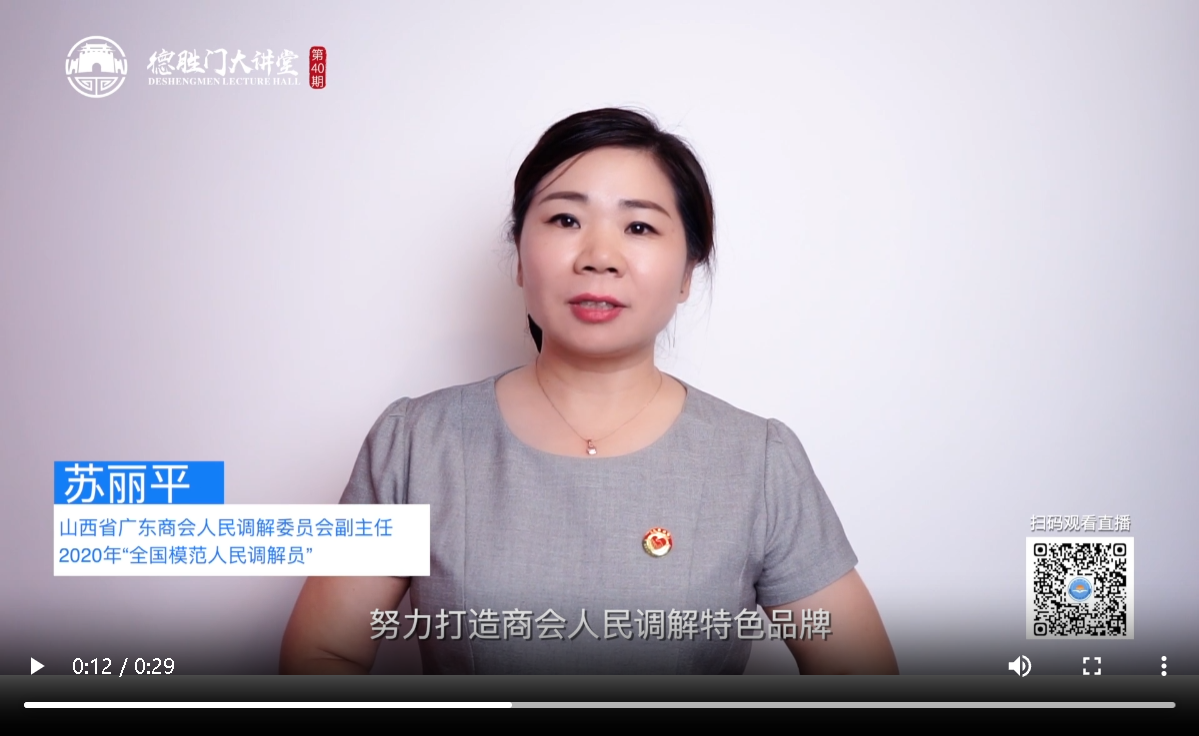 2021年7月27日至28日,山西省廣東商會(huì)(中國(guó)晉商俱樂部聯(lián)合發(fā)起機(jī)構(gòu))副會(huì)長(zhǎng)、調(diào)委會(huì)副主任蘇麗萍,應(yīng)邀出席了全國(guó)工商聯(lián)在安徽合肥舉辦的商會(huì)調(diào)解工作推進(jìn)會(huì),并作為全國(guó)工商聯(lián)德勝門大講堂第40期“”賦能商會(huì)調(diào)解 協(xié)同社會(huì)治理“”對(duì)話交流的特邀嘉賓在會(huì)上做了交流分享發(fā)言。