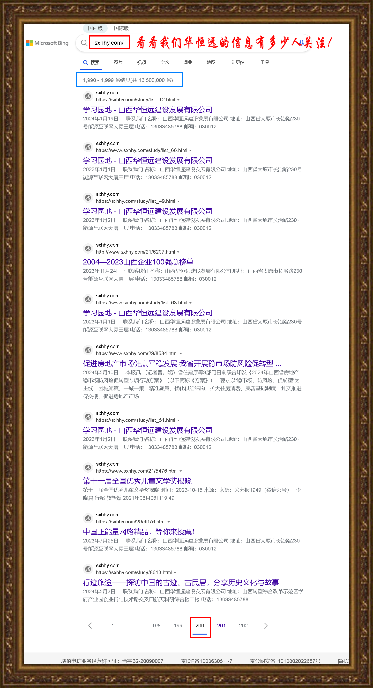 以前,我做山西建協(xié)和山西二建的網(wǎng)站空間,最高記錄是69個頁碼,而今天查看華恒遠網(wǎng)站的搜索頁達到了200,讓我感到驚奇!