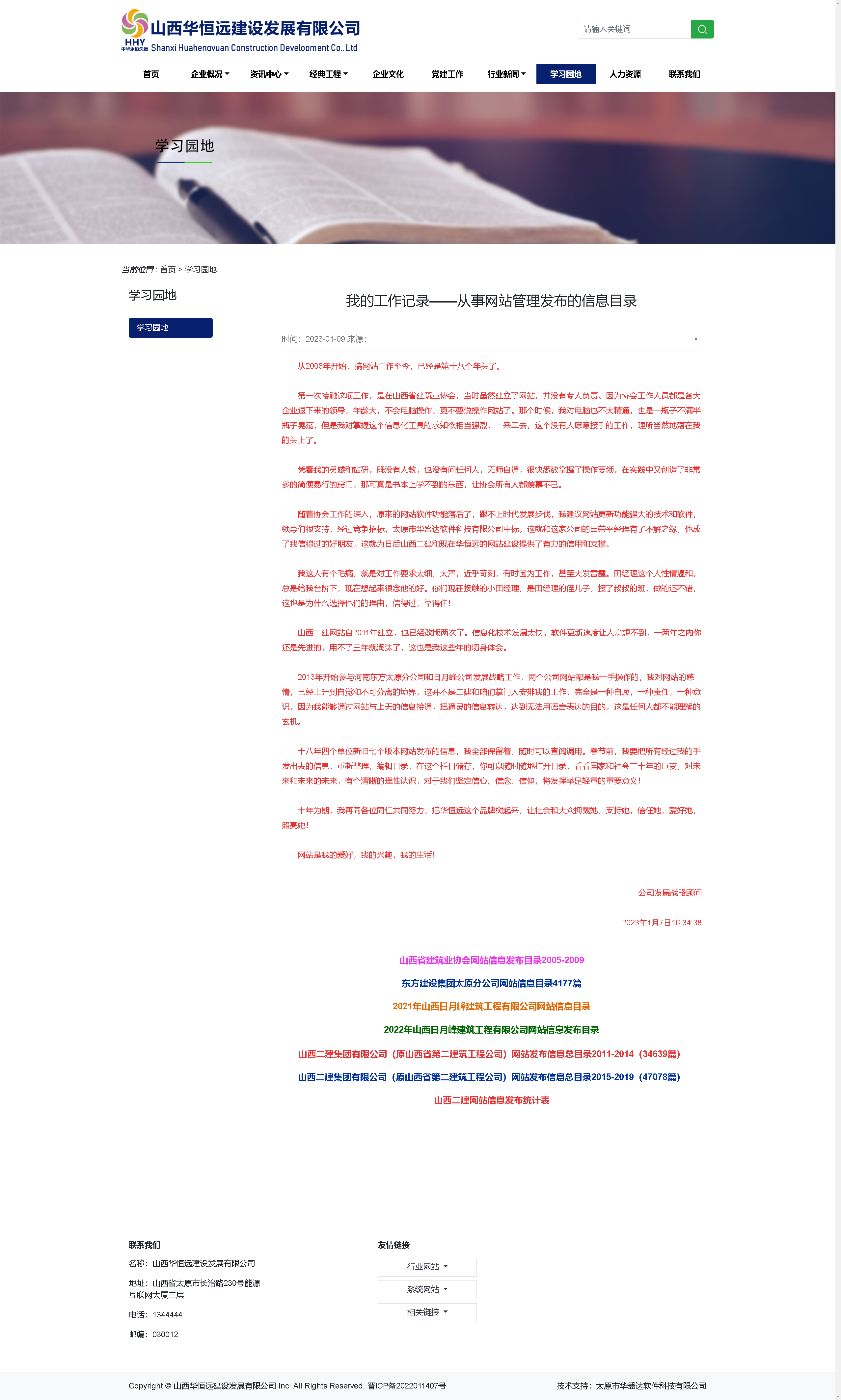 2022年山西日月峰建筑工程有限公司網(wǎng)站信息發(fā)布目錄