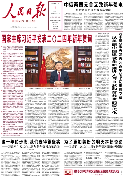 2014年元旦《人民日報》發(fā)表《國家主席習(xí)近平發(fā)表二〇一四年新年賀詞》。