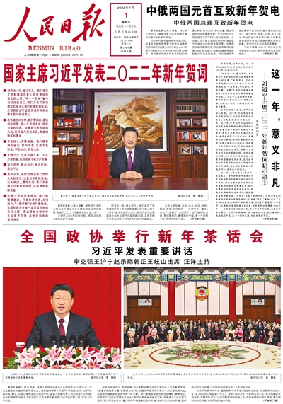 2021年元旦《人民日報》發(fā)表《國家主席習(xí)近平發(fā)表二〇二一年新年賀詞》。
