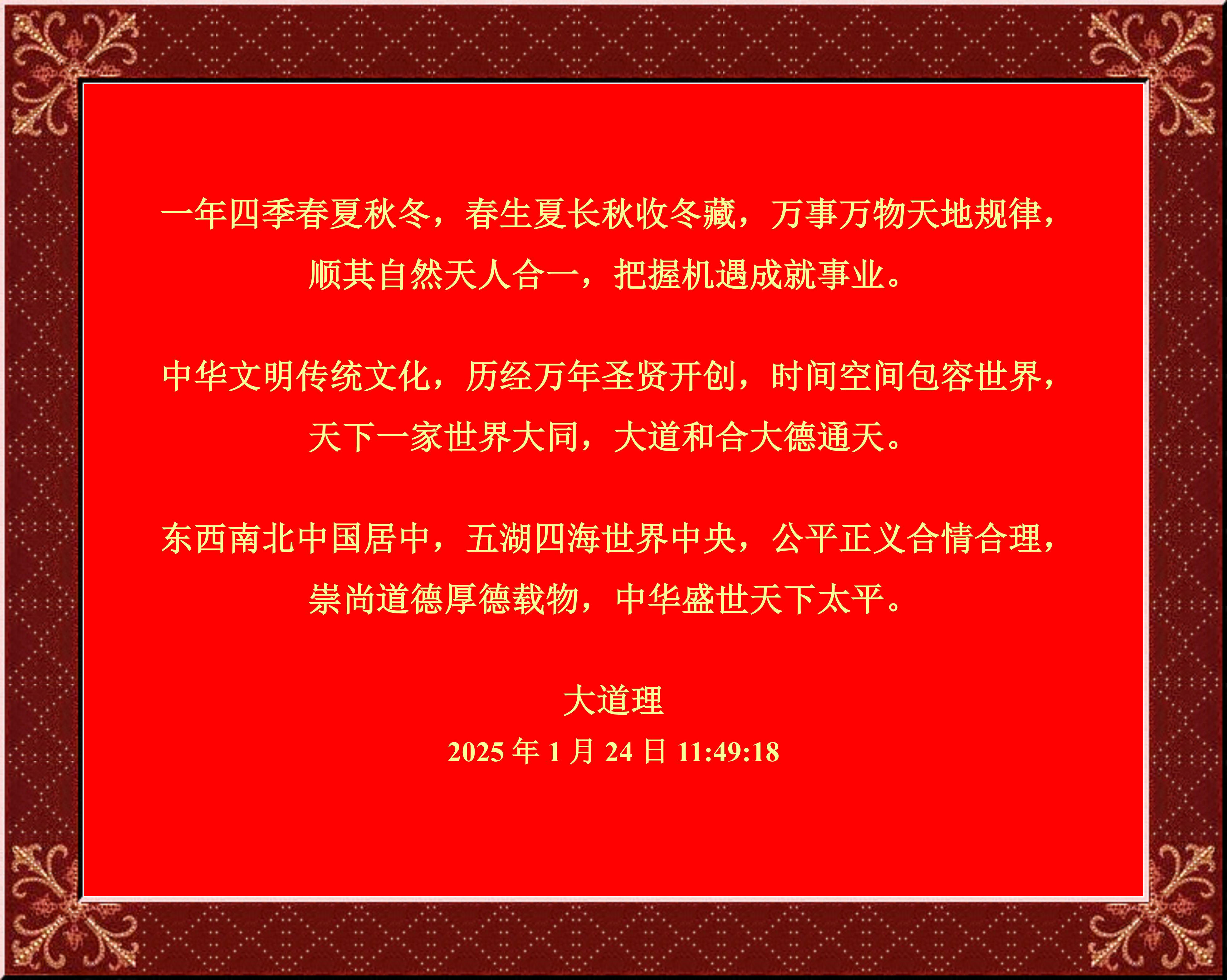 中華文明傳統(tǒng)文化,歷經(jīng)萬年圣賢開創(chuàng),時間空間包容世界,天下一家世界大同,大道和合大德通天。