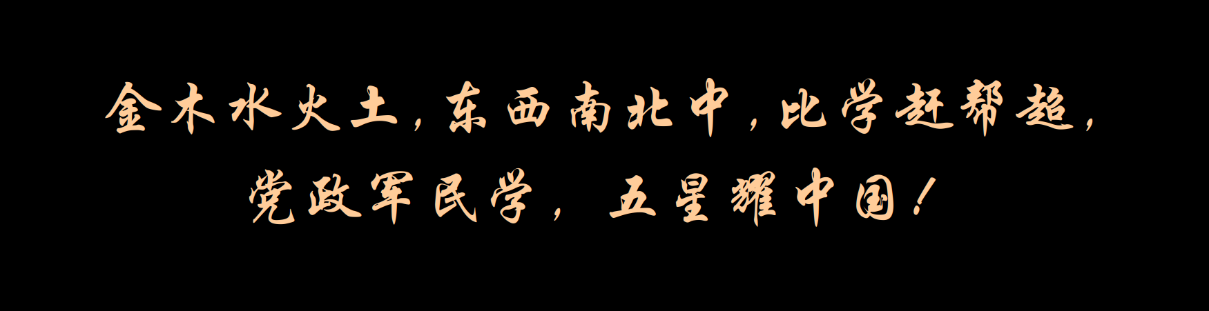 金木水火土,東西南北中,比學趕幫超,黨政軍民學,五星耀中國!