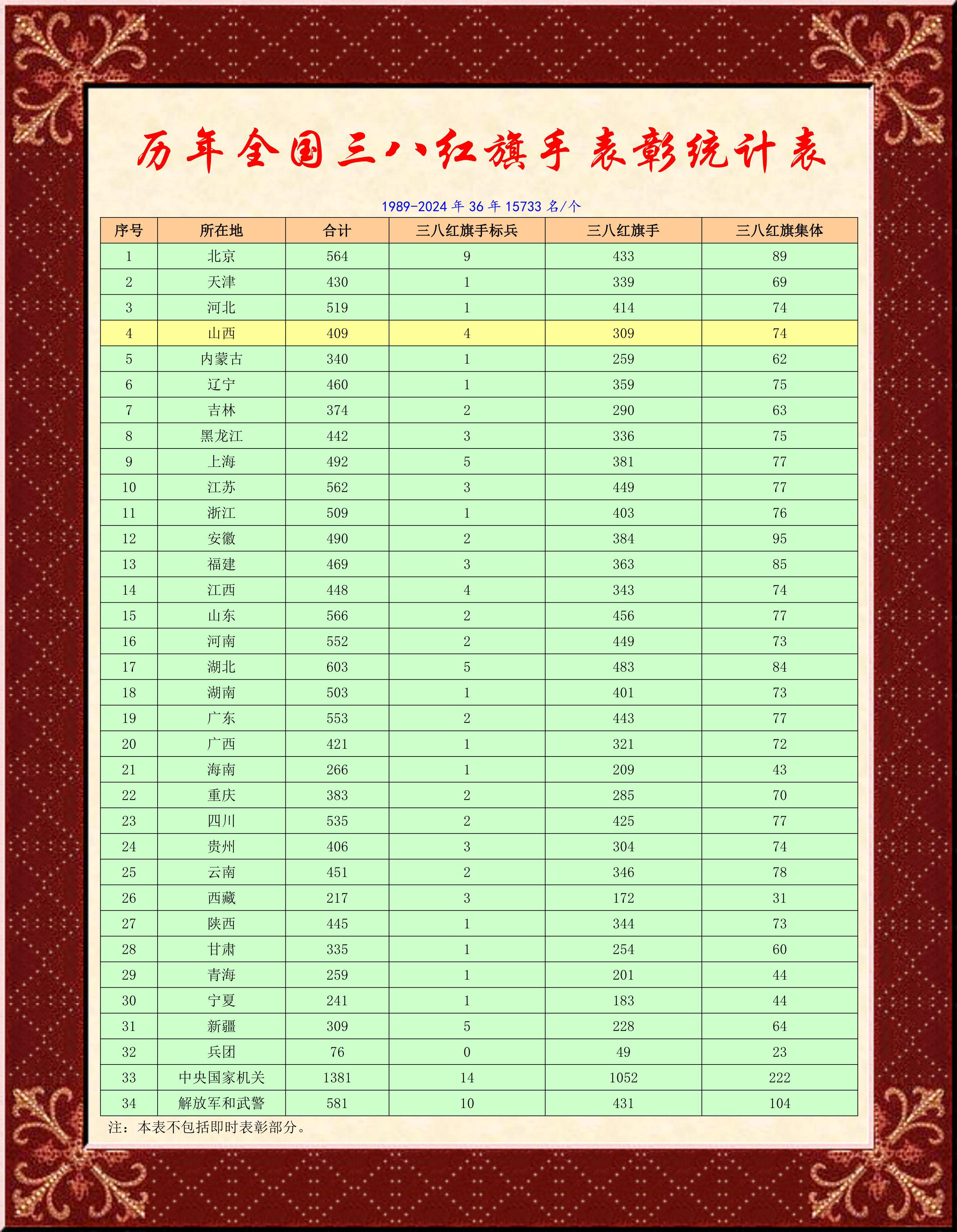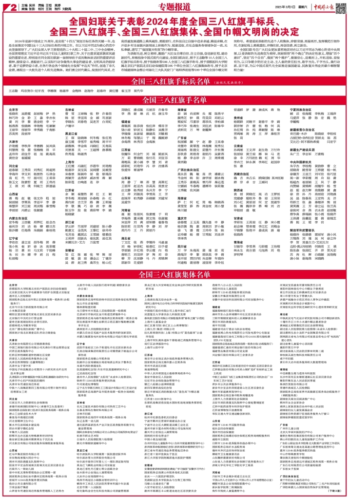 三八紅旗標兵4名、三八紅旗手329、三八紅旗集體76個,共計409名/個