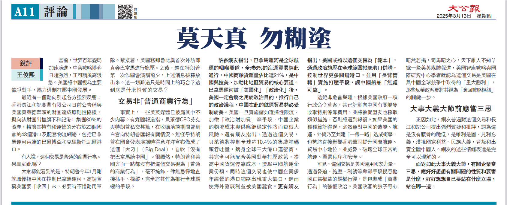 銳評/莫天真 勿糊涂\王俊熙2025-03-13