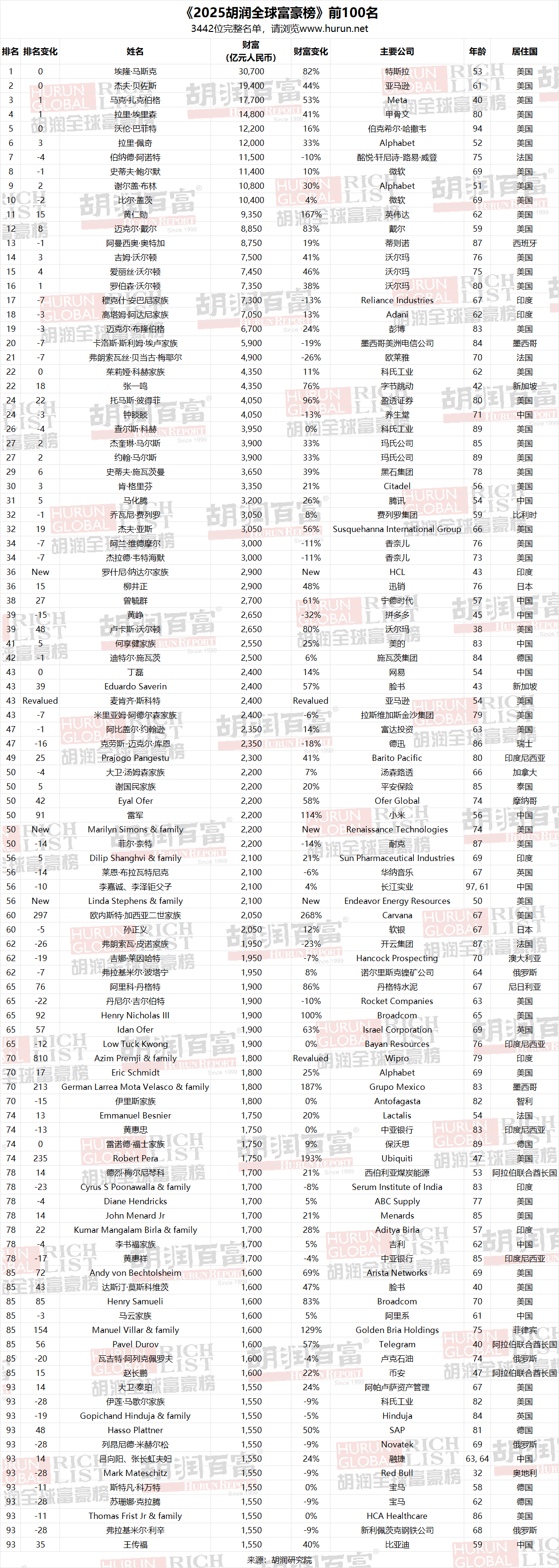 今年3442位世界各國(guó)企業(yè)家上榜《胡潤(rùn)全球富豪榜》,是十四年來人數(shù)最多的一次。