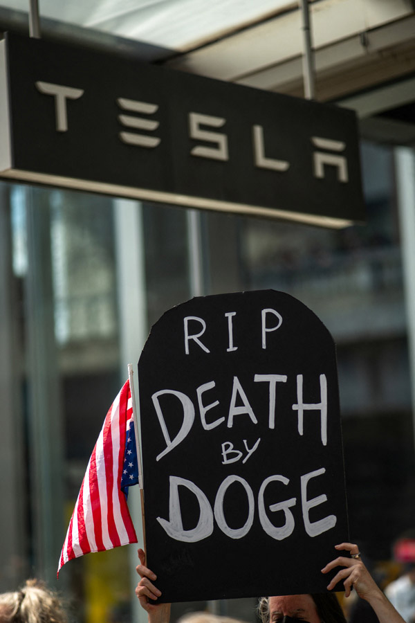 但這種“大刀闊斧”的改革也引發(fā)強(qiáng)烈不滿,使馬斯克的特斯拉公司成為眾矢之的。3月29日,一場聲勢浩大的“打倒特斯拉”(Tesla Takedown)抗議活動在美國、加拿大以及歐洲上演。成千上萬名抗議者走上街頭,反對馬斯克及其領(lǐng)導(dǎo)的DOGE削減人道主義援助、關(guān)閉聯(lián)邦機(jī)構(gòu)并解雇政府雇員的舉措。