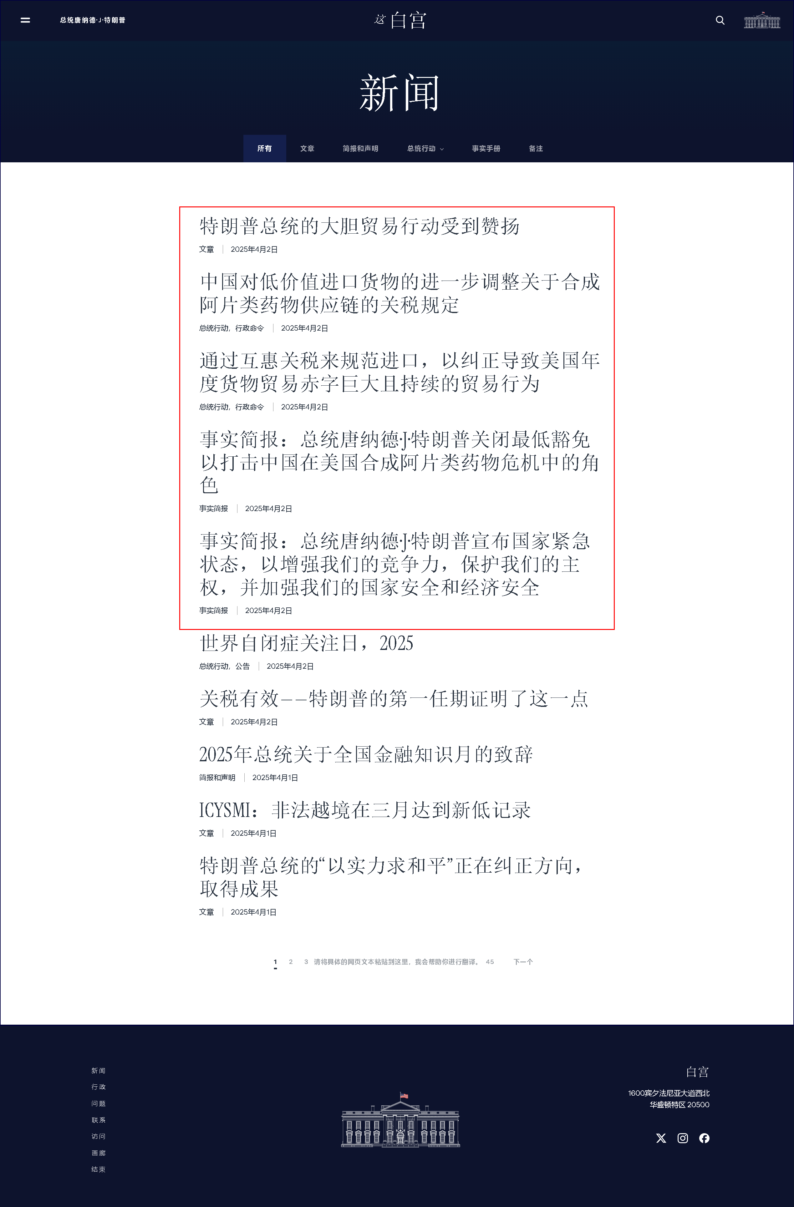 2025年1月20日,我簽署了《美國優(yōu)先貿(mào)易政策總統(tǒng)備忘錄》,指示我的政府調(diào)查我國商品年度貿(mào)易赤字巨大且持續(xù)的原因,包括這些赤字帶來的經(jīng)濟(jì)和國家安全影響及風(fēng)險,并對其他國家的任何不公平貿(mào)易做法進(jìn)行審查和識別。2025年2月13日,我簽署了《互惠貿(mào)易和關(guān)稅》的總統(tǒng)備忘錄,進(jìn)一步審查我國貿(mào)易伙伴的非互惠貿(mào)易做法,并指出非互惠做法與貿(mào)易赤字之間的關(guān)系。2025年4月1日,我收到了這些調(diào)查的最終結(jié)果,并根據(jù)這些結(jié)果采取了行動。
