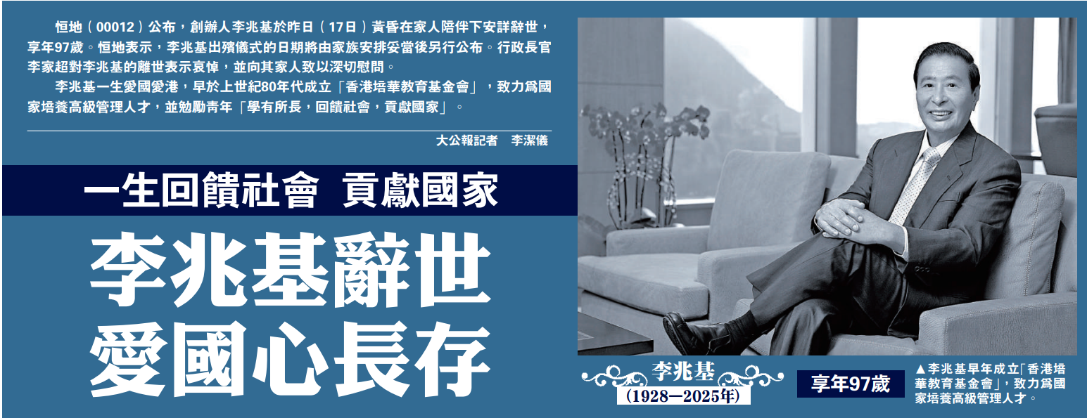 香港商界巨頭,一位是李兆基,今年3月17日以數(shù)不盡的榮譽(yù)和光環(huán)安詳辭世,留給后人太多太多的懷念和崇敬,此生無憾此生值得此生無價(jià)!