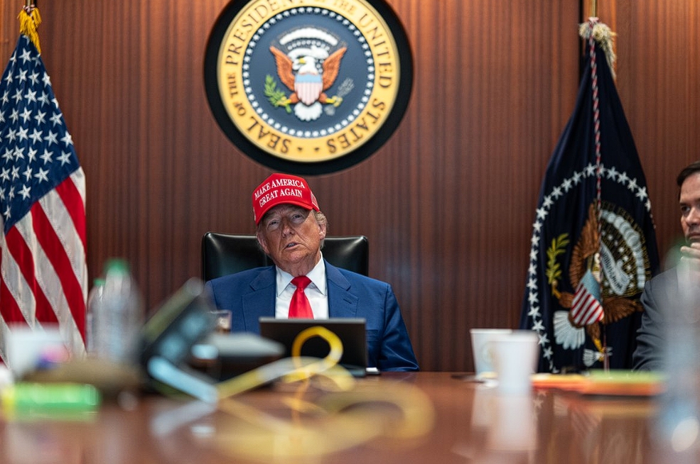 美國還是動手了。在美國總統(tǒng)特朗普宣布“成功打擊”伊朗三處核設施后,白宮在社交媒體X平臺上公布了若干張?zhí)乩势請F隊在戰(zhàn)情室內(nèi)的畫面。