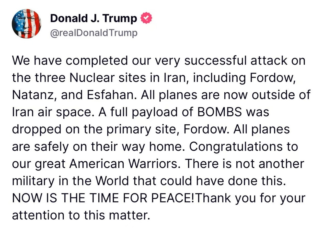特朗普在社交平臺(tái)宣布對(duì)伊朗核設(shè)施的襲擊,結(jié)尾還在強(qiáng)調(diào)“現(xiàn)在是和平的時(shí)候了”......到目前為止,伊以沖突雖然規(guī)模還不能與中東前幾次戰(zhàn)爭(zhēng)相比,但作為伊拉克戰(zhàn)后中東地區(qū)爆發(fā)的第一場(chǎng)區(qū)域大國之間的對(duì)戰(zhàn),存在不少突破既有國際規(guī)則之處。并且沖突各方都缺乏對(duì)全局的把控能力,很可能將會(huì)把這場(chǎng)沖突帶向不可知的方向。