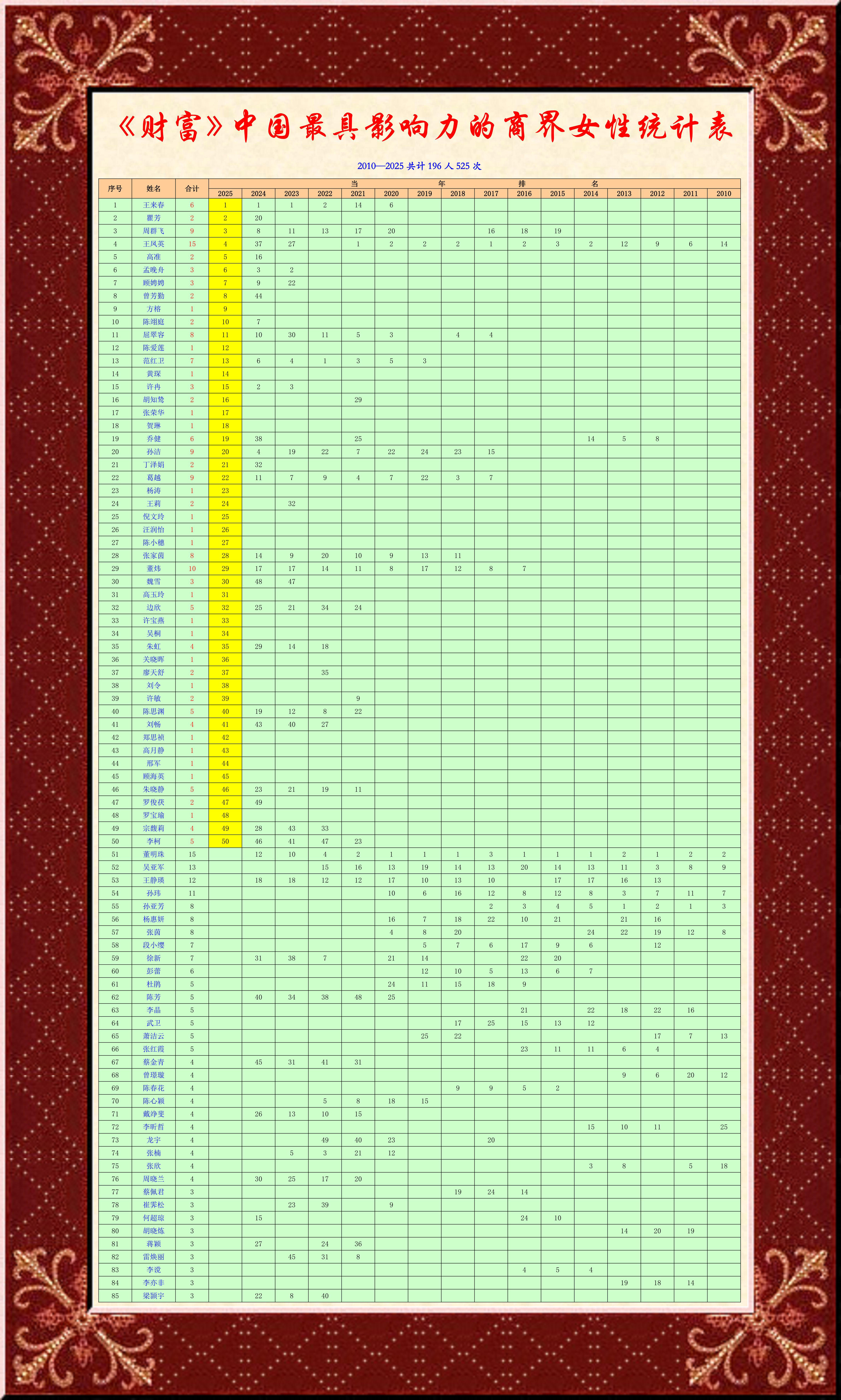 【行業(yè)動態(tài)】福布斯中國發(fā)布2025杰出商界女性100