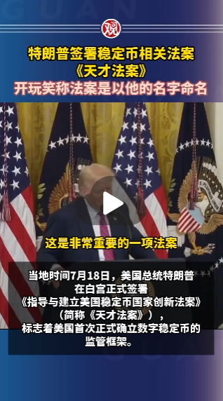 當(dāng)?shù)貢r(shí)間7月18日,美國(guó)總統(tǒng)特朗普在白宮正式簽署《指導(dǎo)與建立美國(guó)穩(wěn)定幣國(guó)家創(chuàng)新法案》(簡(jiǎn)稱《天才法案》),標(biāo)志著美國(guó)首次正式確立數(shù)字穩(wěn)定幣的監(jiān)管框架。