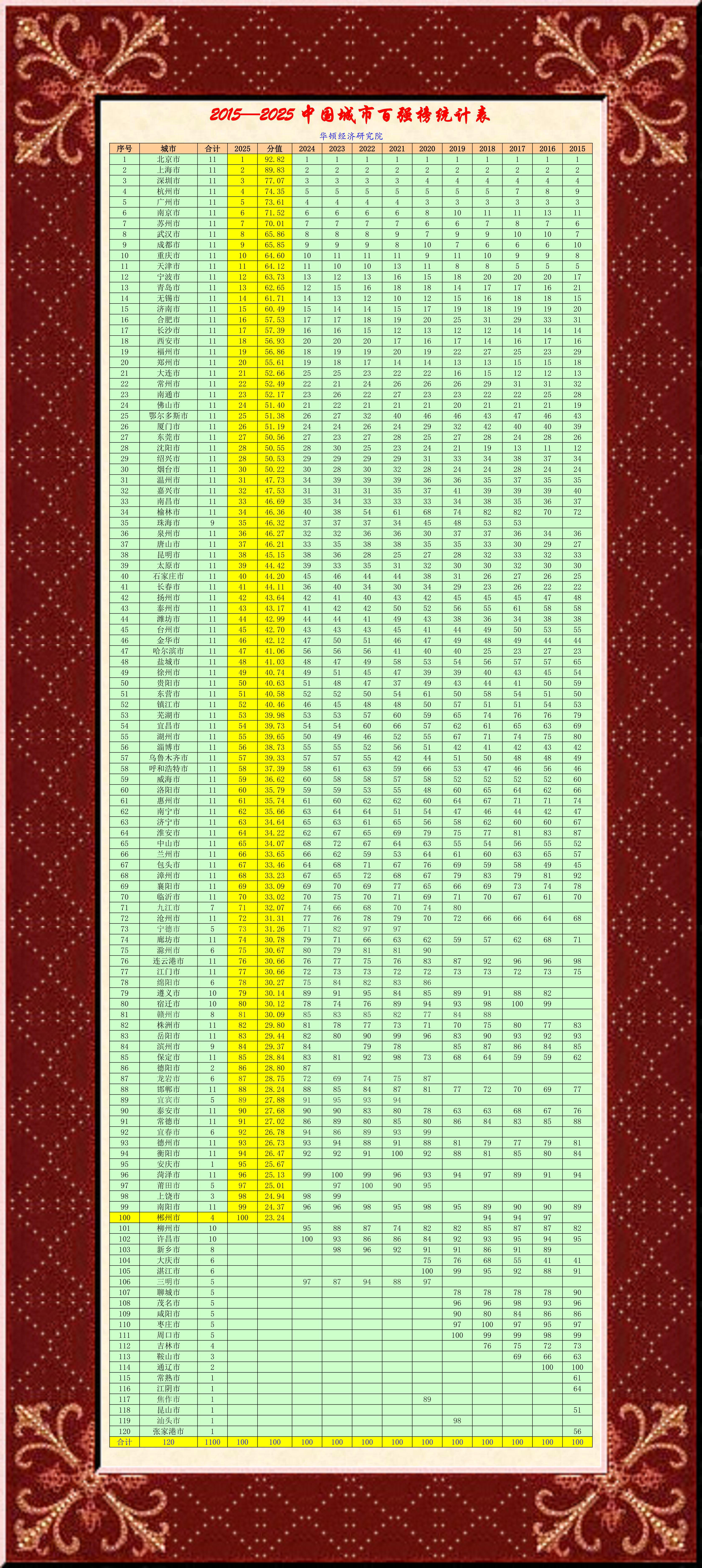 看看全國120個(gè)上榜城市綜合指數(shù)排名,未來發(fā)展空間在哪里?