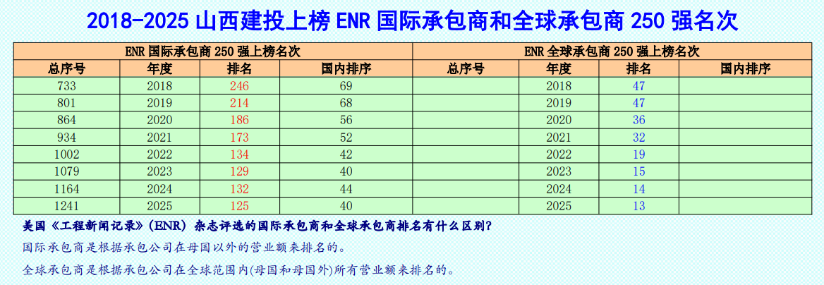 2025ENR國際承包商250排行榜入圍中國企業(yè)名錄