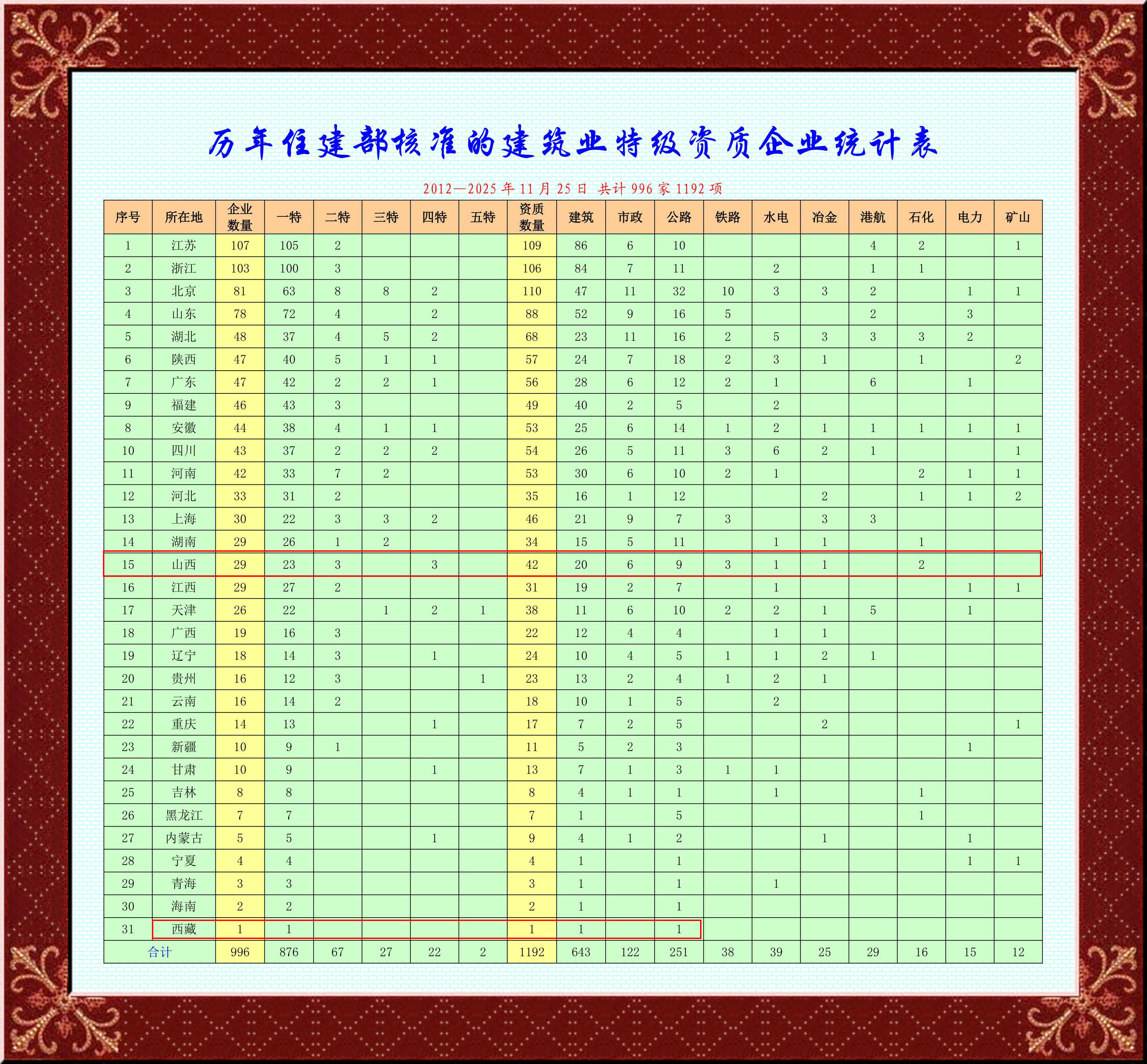 讓我們看看中國建筑業(yè)第一方陣的千家特級大公司大集團大企業(yè)都是誰家!