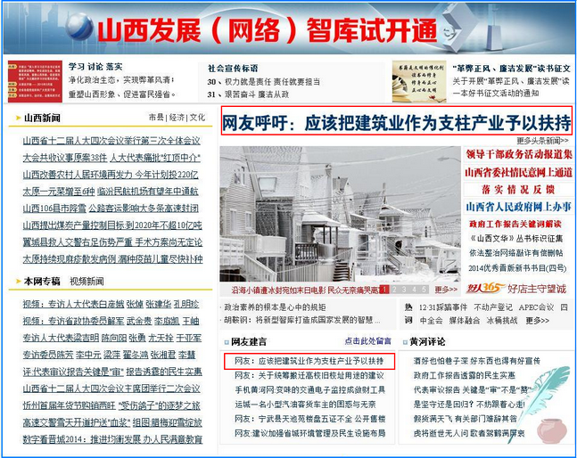 這是2015年1月30日,黃河新聞網(wǎng)在首頁頭條突出位置刊登我給省委書記王儒林的建言。