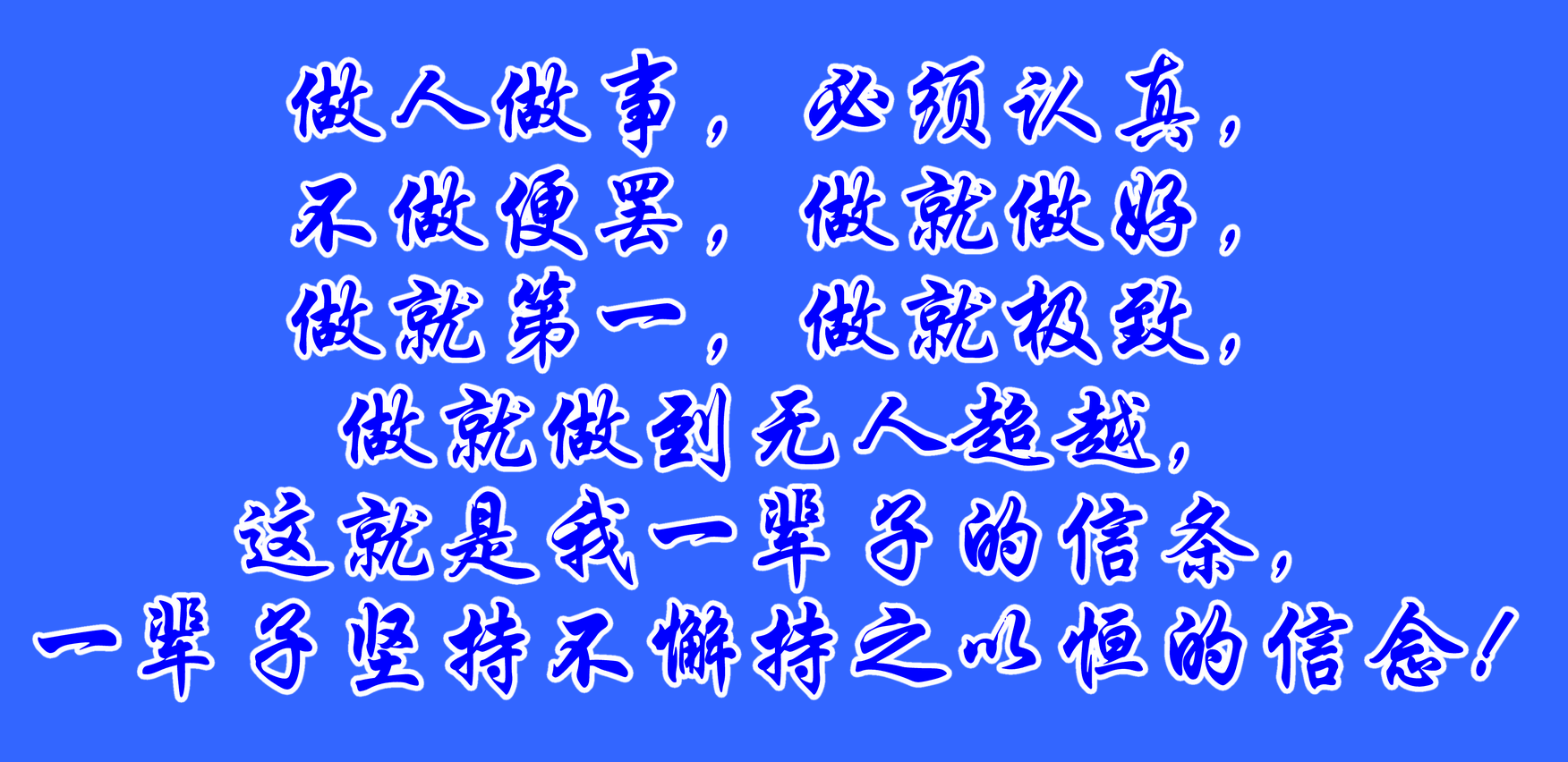 做人做事,必須認(rèn)真,不做便罷,做就做好,做就第一,做就極致,做就做到無人超越,這就是我一輩子的信條,一輩子堅持不懈持之以恒的信念!可以說,七十年始終如一,不曾懈怠,年復(fù)一年,日復(fù)一日,修成正果,此生甚慰!我做到了人生無憾上天護(hù)佑的境界,做到了為人一世天地良心的高端,做到了道德和合一體的自然,感慨、欣慰、滿足!