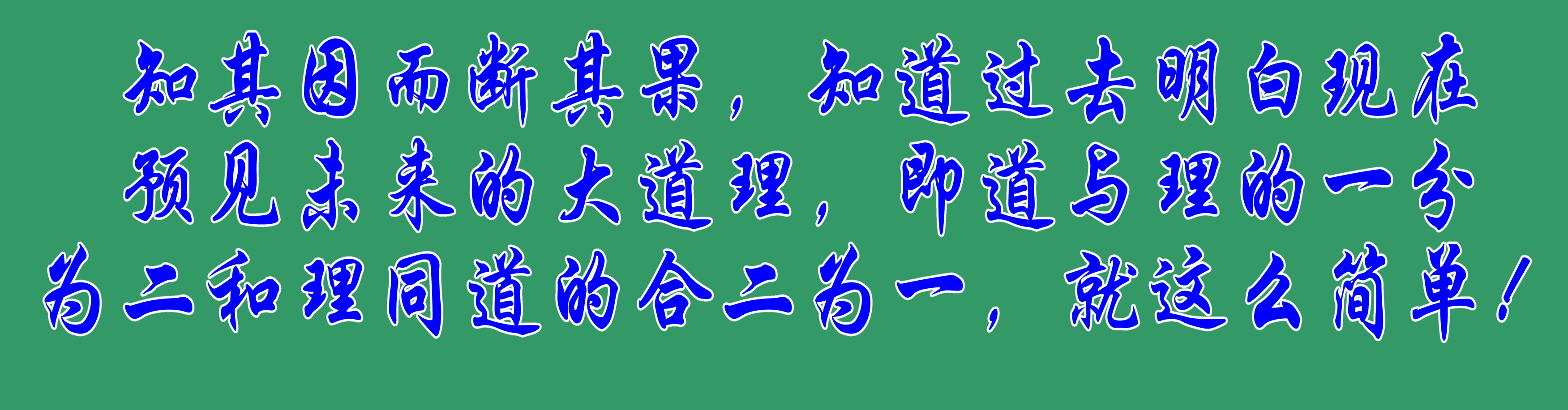 經過一個輪回的經歷,經過反復思考實踐,這個問題有了解開的答案和方法,就是知其因而斷其果,知道過去明白現(xiàn)在預見未來的大道理,即道與理的一分為二和理同道的合二為一,就這么簡單!