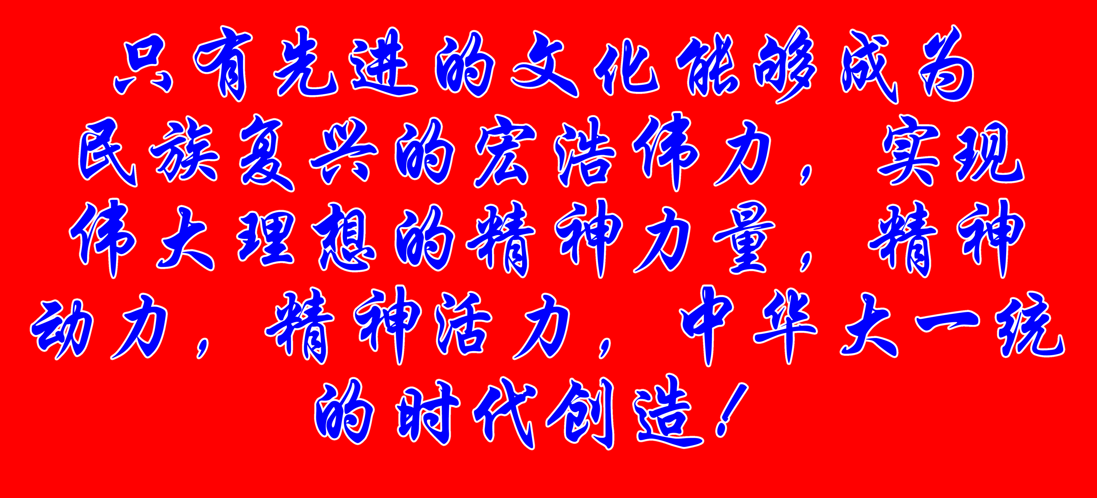 只有先進(jìn)的文化能夠成為民族復(fù)興的宏浩偉力,實(shí)現(xiàn)偉大理想的精神力量,精神動(dòng)力,精神活力,中華大一統(tǒng)的時(shí)代創(chuàng)造!