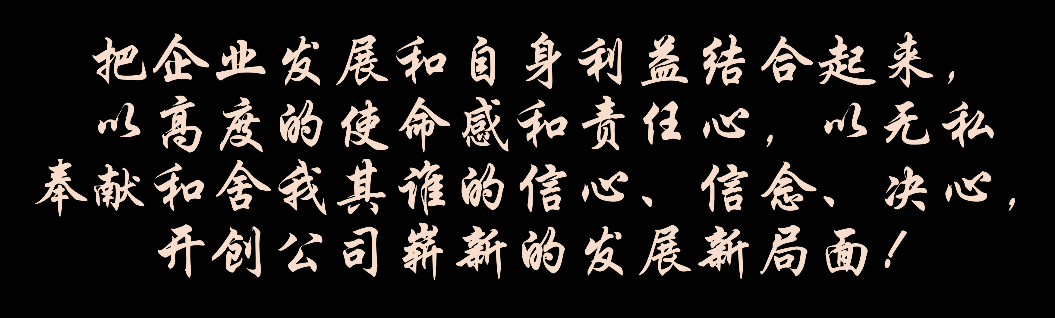 這些忠告和勸戒,希望你們?nèi)胄娜肽X,不要只看眼前利益,要看長遠利益,識大體,顧大局,把全體員工的利益放在第一位,去謀劃,去實踐,去落實!希望你們不負眾望,不負重托,不辱使命,在董事長和副董事長的領(lǐng)導和支持下,同心同德,不離不棄,團結(jié)起來,爭取更大的勝利!