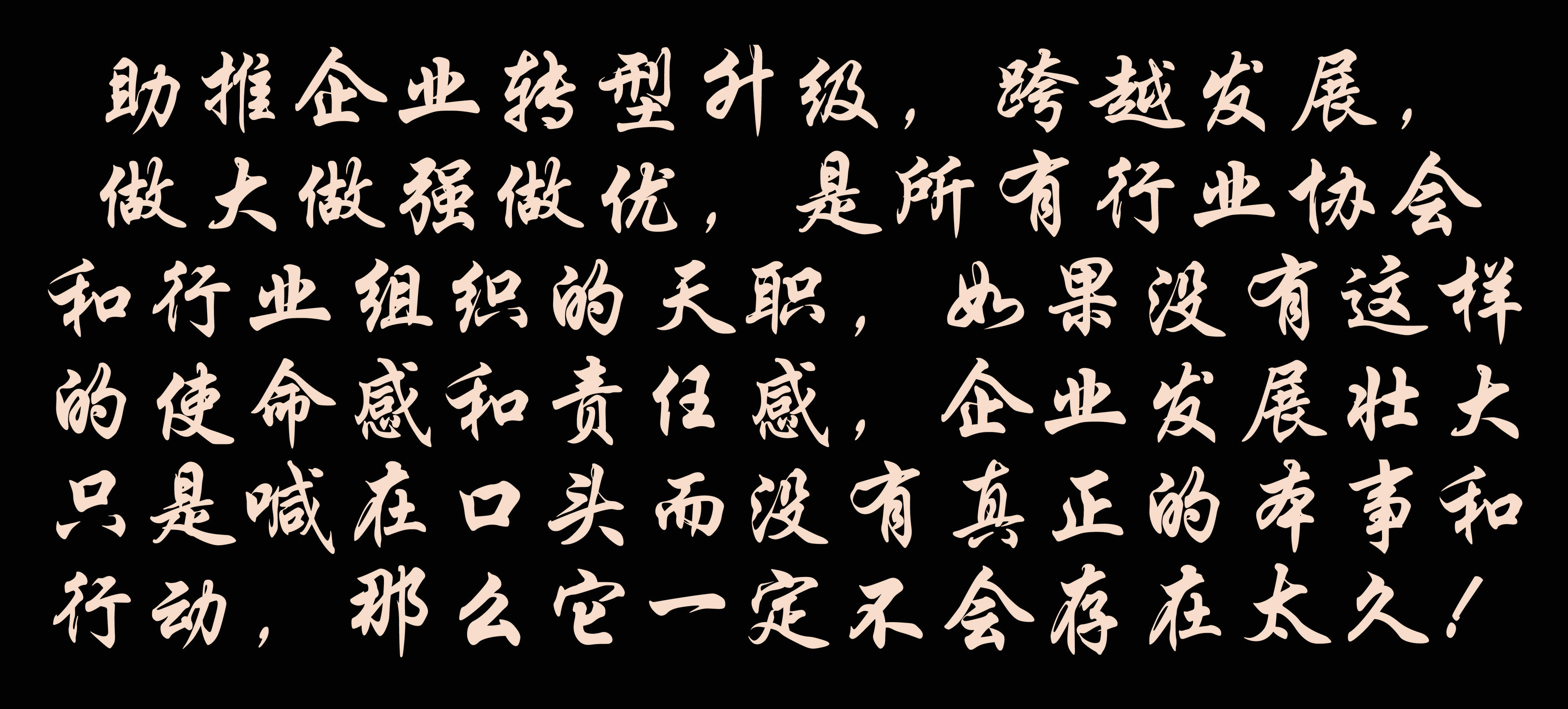 助推企業(yè)轉(zhuǎn)型升級,跨越發(fā)展,做大做強(qiáng)做優(yōu),是所有行業(yè)協(xié)會和行業(yè)組織的天職,如果沒有這樣的使命感和責(zé)任感,企業(yè)發(fā)展壯大只是喊在口頭而沒有真正的本事和行動,那么它一定不會存在太久!