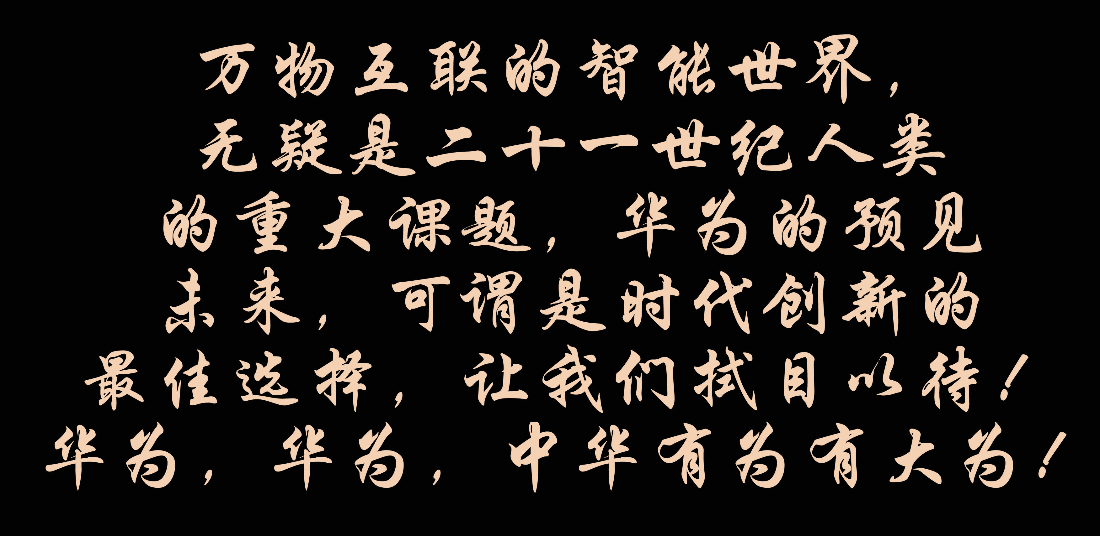 萬物互聯(lián)的智能世界,無疑是二十一世紀人類的重大課題,華為的預見未來,可謂是時代創(chuàng)新的最佳選擇,讓我們拭目以待!