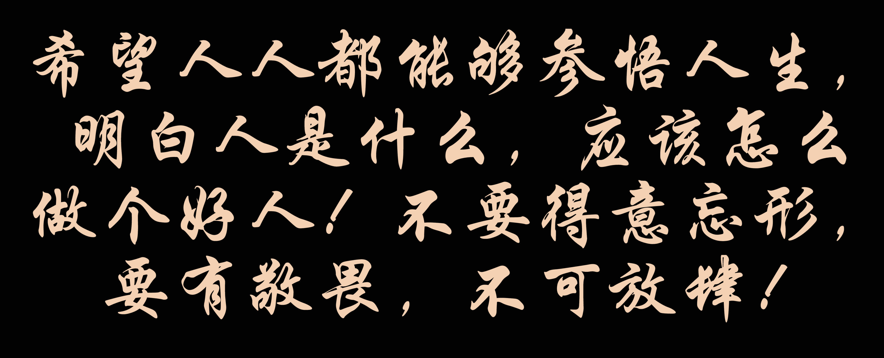 希望人人都能夠參悟人生,明白人是什么,應(yīng)該怎么做個(gè)好人!不要得意忘形,要有敬畏,不可放肆!