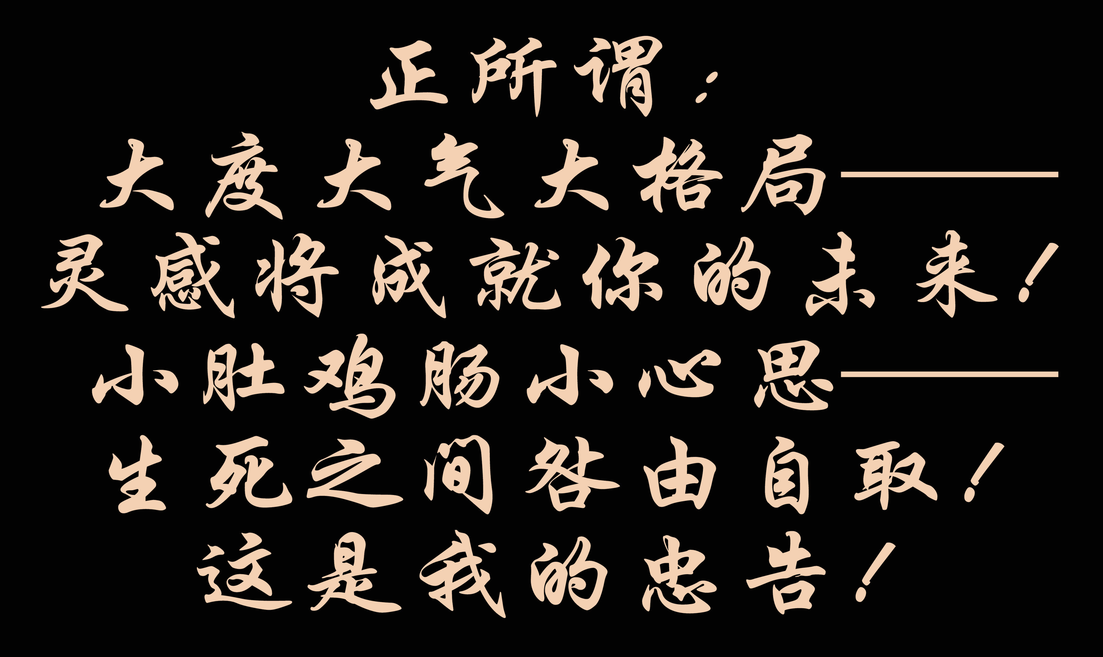 正所謂:大度大氣大格局——靈感將成就你的未來!小肚雞腸小心思——生死之間咎由自??!