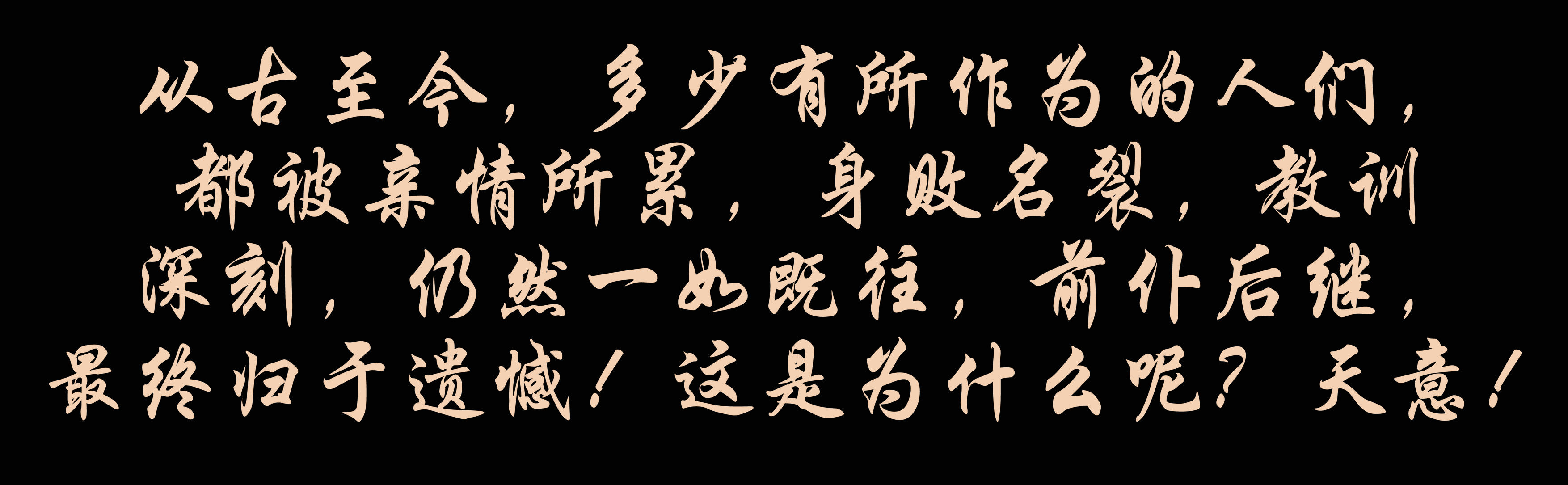 從古至今,多少有所作為的人們,都被親情所累,身敗名裂,教訓(xùn)深刻,仍然一如既往,前仆后繼,最終歸于遺憾!這是為什么呢?天意!