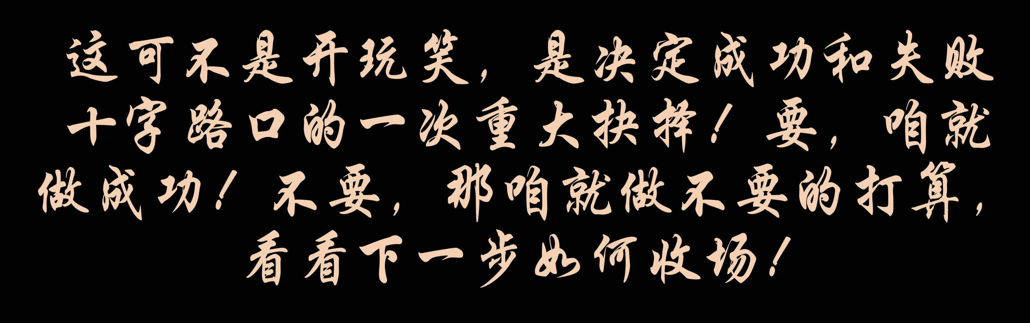 這可不是開玩笑,是決定成功和失敗十字路口的一次重大抉擇!要,咱就做成功!不要,那咱就做不要的打算,看看下一步如何收場!