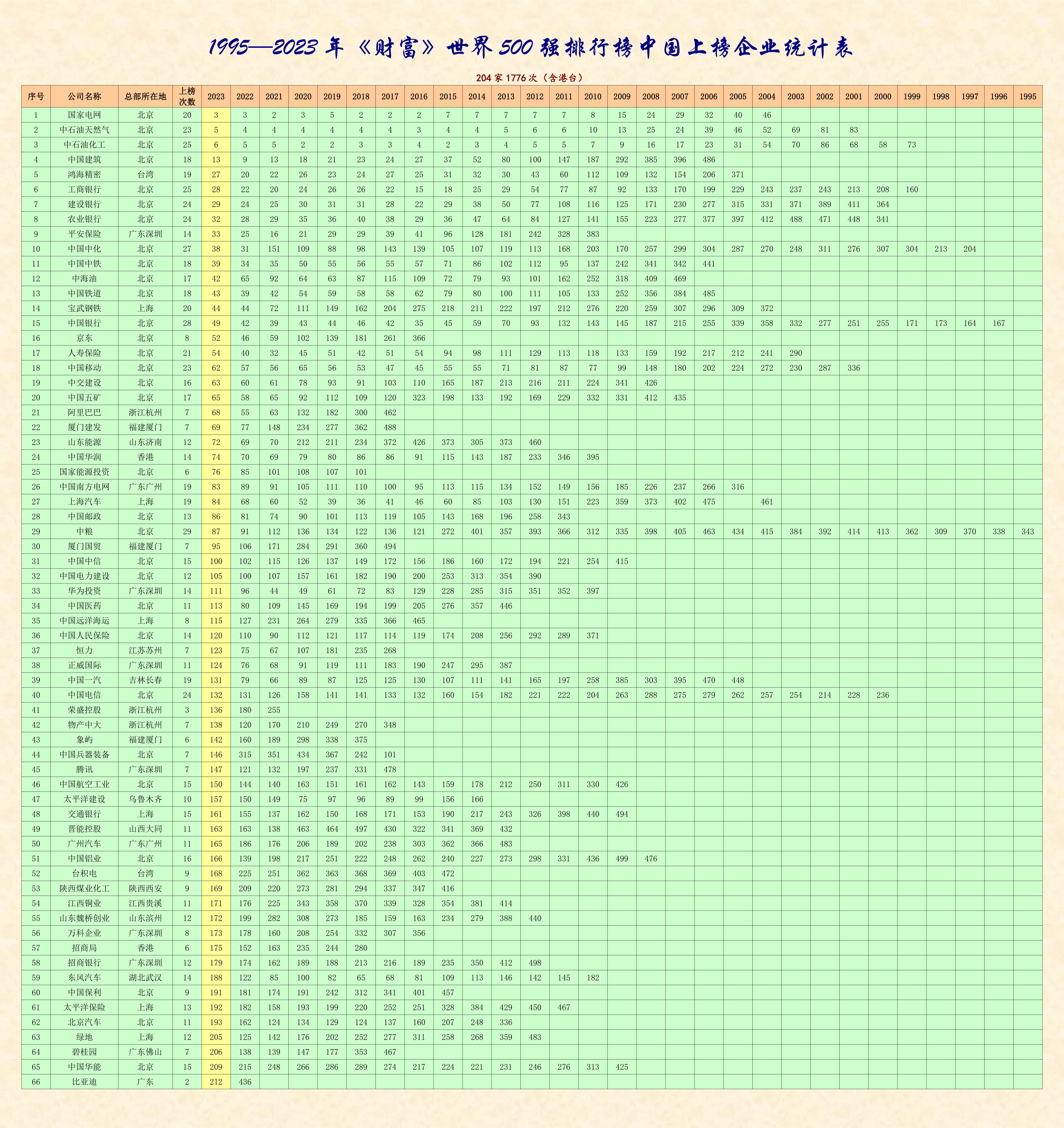 《財富》世界500強雜志社,從1995年開始在中國登陸,已經(jīng)連續(xù)舉辦了29期中文版的世界500強排名榜,我收集到的完整資料,僅缺第一期1995年的全榜單,所以,目前只能編輯二十八期。即1996-2023年《財富》世界500強和中國上榜企業(yè)的名單,待日后有機會的話再補齊。