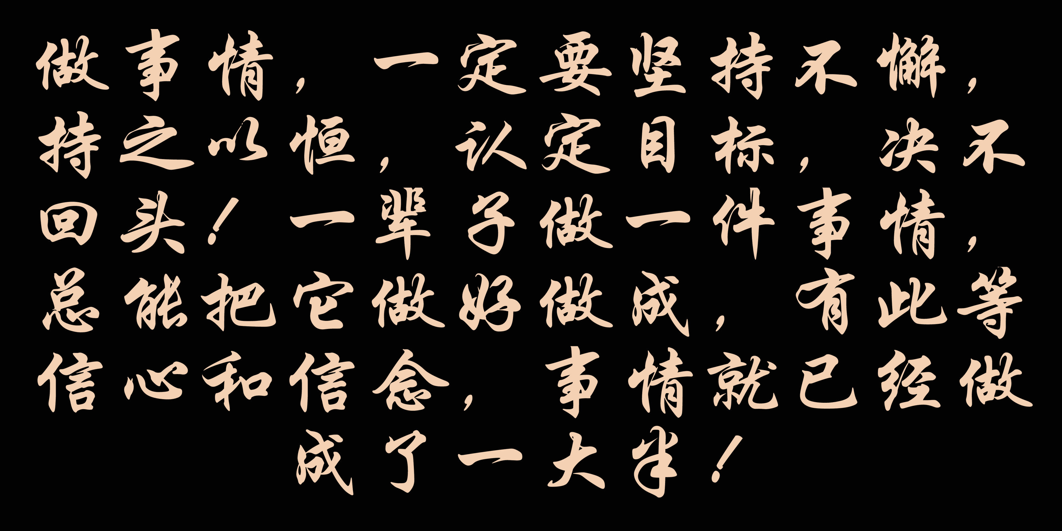 做事情,一定要堅持不懈,持之以恒,認定目標,決不回頭!一輩子做一件事情,總能把它做好做成,有此等信心和信念,事情就已經(jīng)做成了一大半!