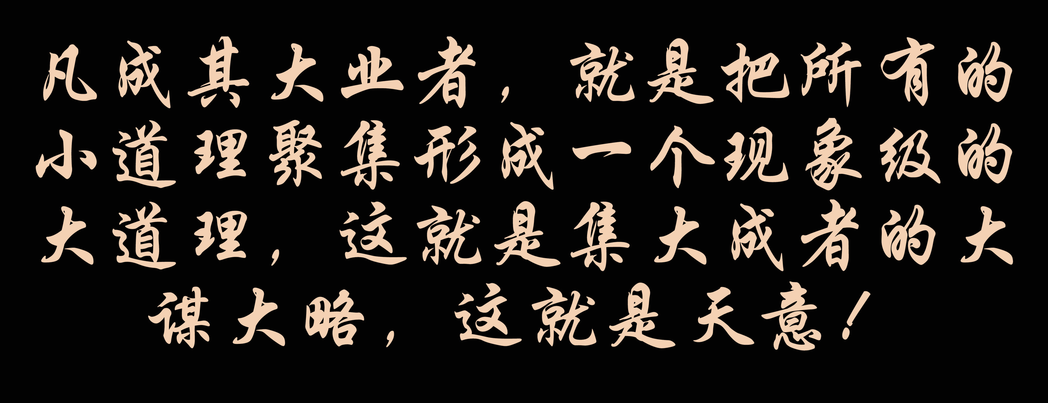 凡成其大業(yè)者,就是把所有的小道理聚集形成一個現(xiàn)象級的大道理,這就是集大成者的大謀大略,這就是天意!