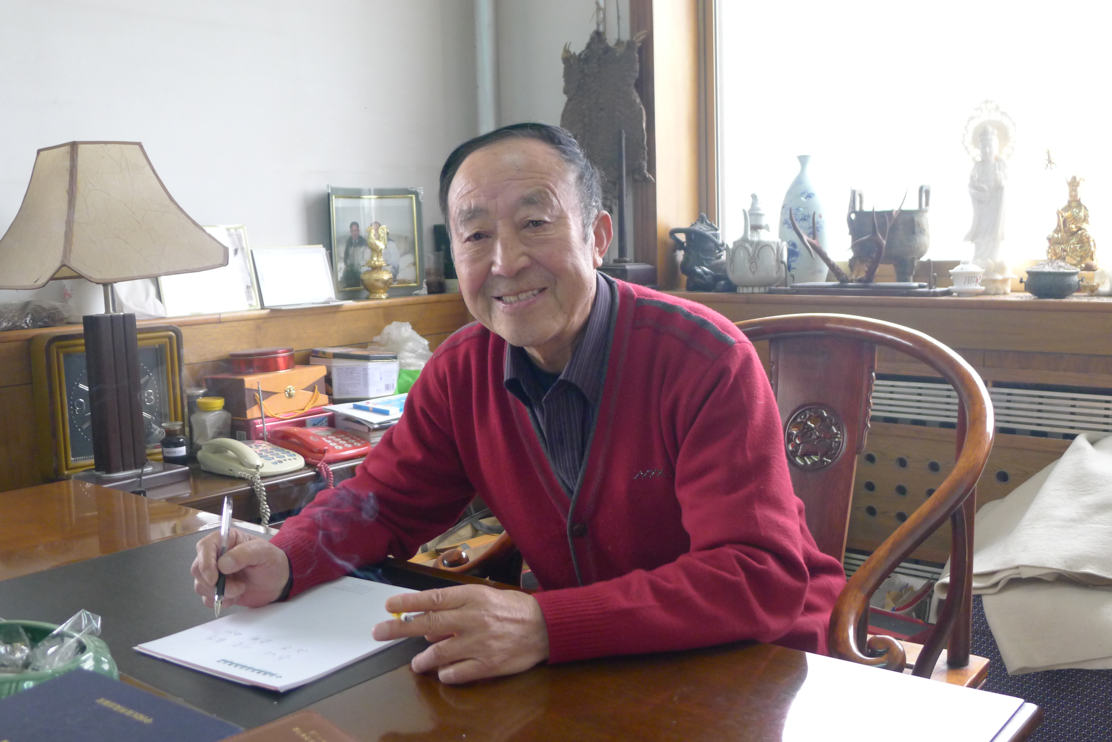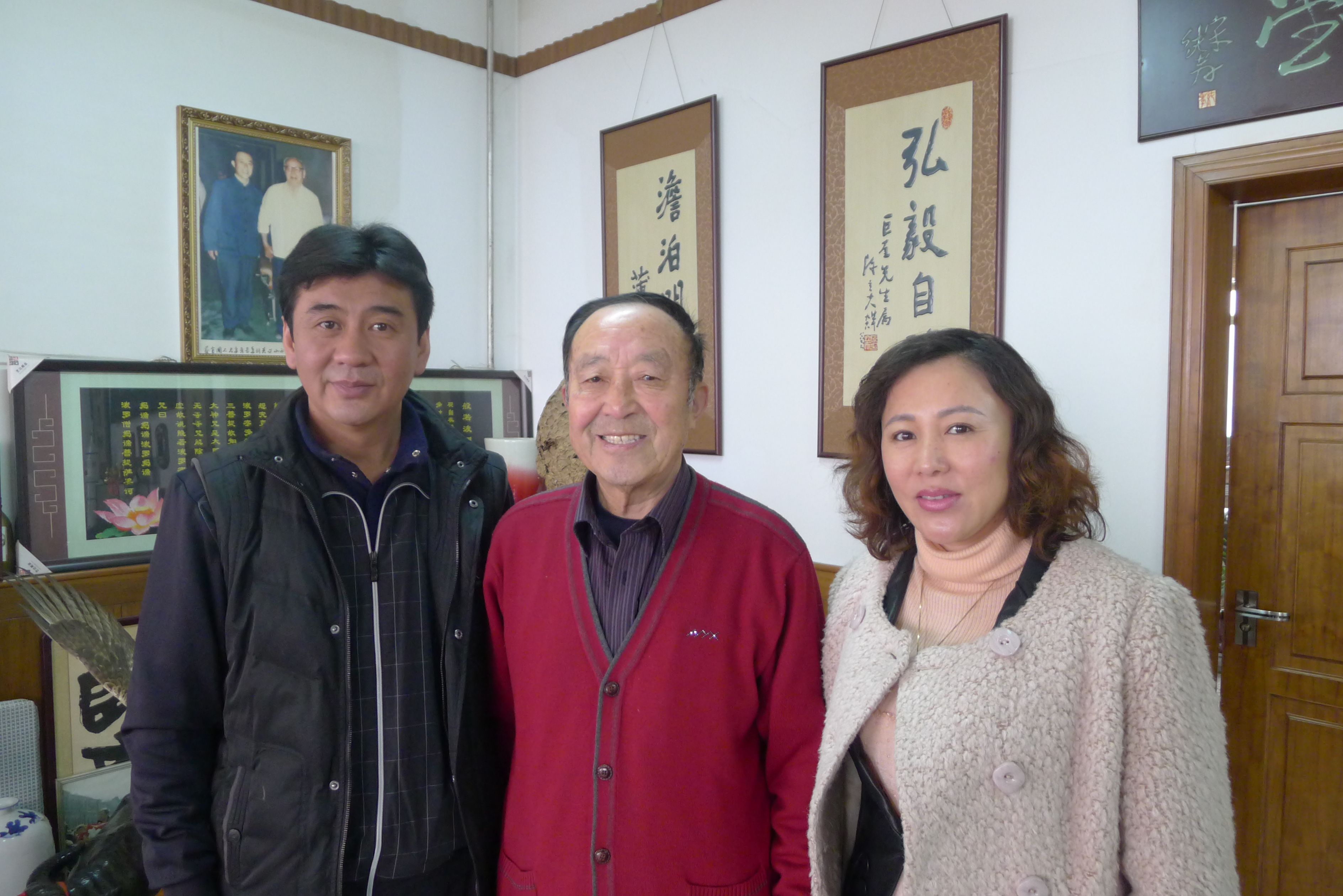 網(wǎng)上查出岔氣簡便易行治療方法,試了幾招,并不見效。無奈,只得湊合著睡吧。朦朧之中,又被疼醒,索性起來。在咱們網(wǎng)上查到《313.感悟中華文明的博大精深——傳統(tǒng)優(yōu)秀文化的精髓是中華醫(yī)藥寶庫》這篇文章,看到了楊巨奎先生的照片。那是2012年3月2日,二建掌門人專程拜訪老人家時,引見人王正祥拍攝的。