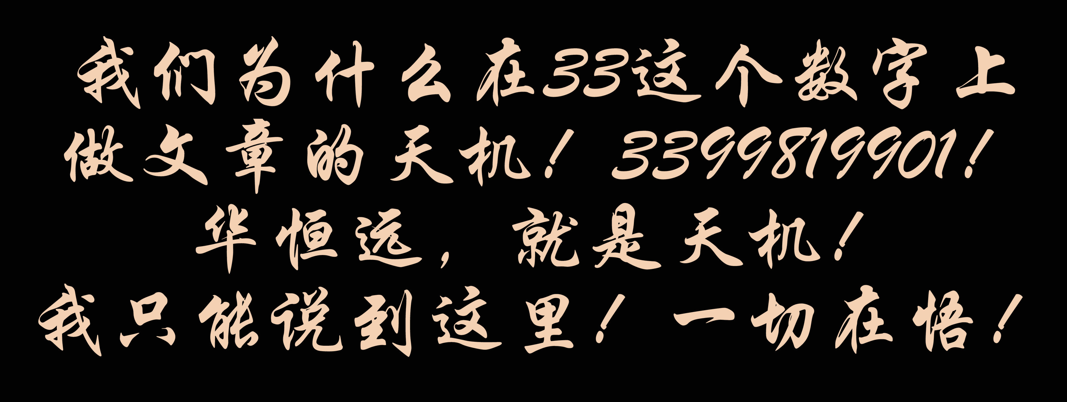 這就是大道和合和大德通天真正的奧妙所在,即因果關(guān)系的自然和必然!也正是我們?yōu)槭裁丛?3這個(gè)數(shù)字上做文章的天機(jī)!3399819901!華恒遠(yuǎn),就是天機(jī)!