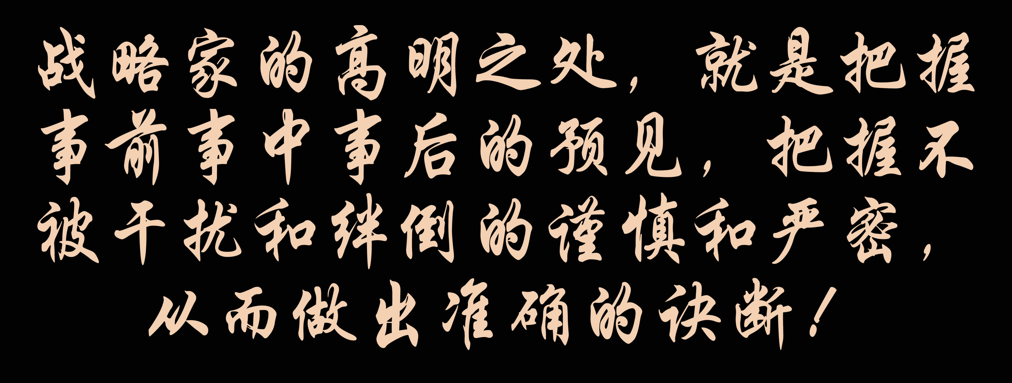 戰(zhàn)略家的高明之處,就是把握事前事中事后的預(yù)見,把握不被干擾和絆倒的謹慎和嚴密,從而做出準確的訣斷!