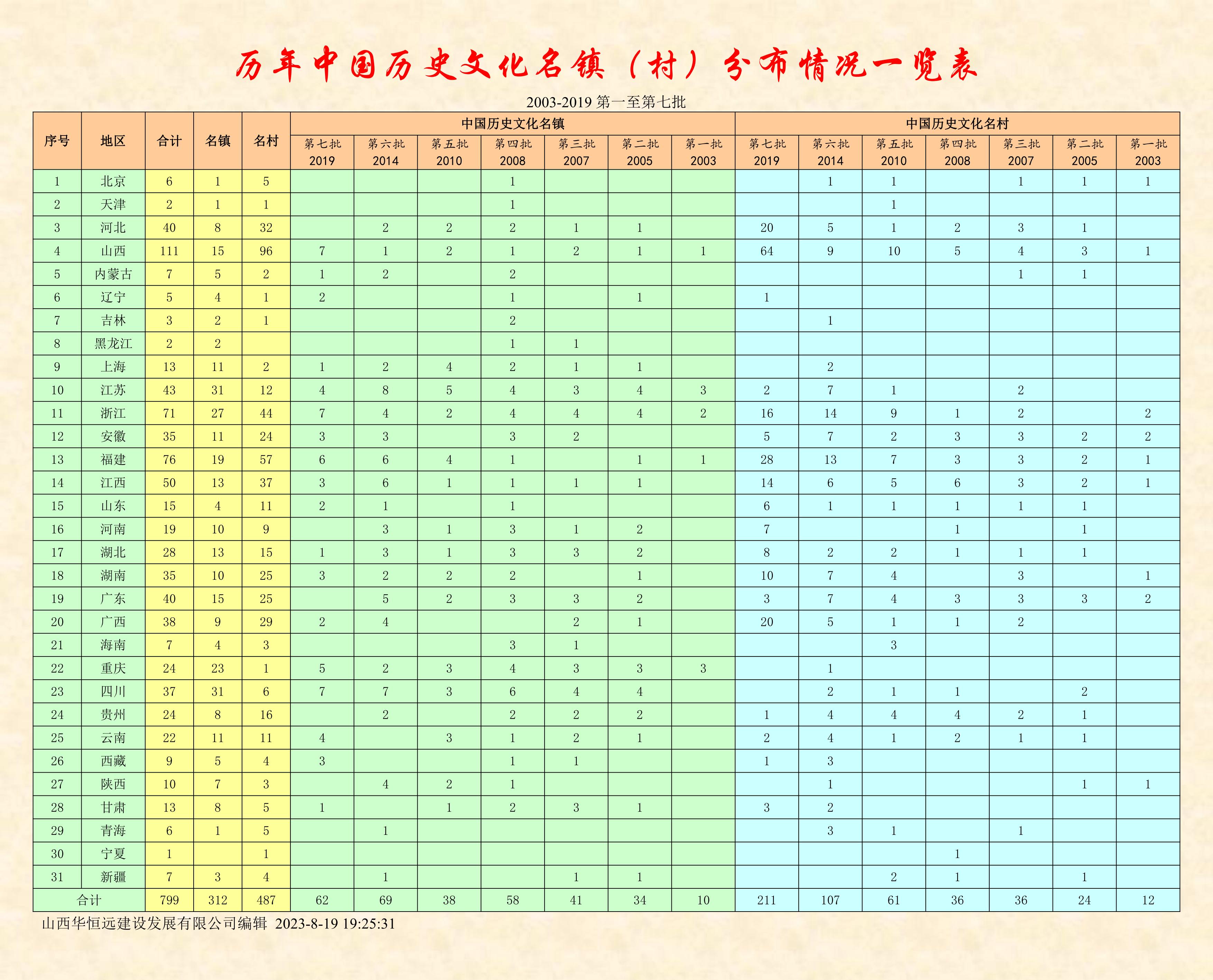 下午,完成了《全國(guó)歷史文化名鎮(zhèn)(村)名錄》的分布情況一覽表,山西省以111個(gè)名鎮(zhèn)名村,位居第一名!
