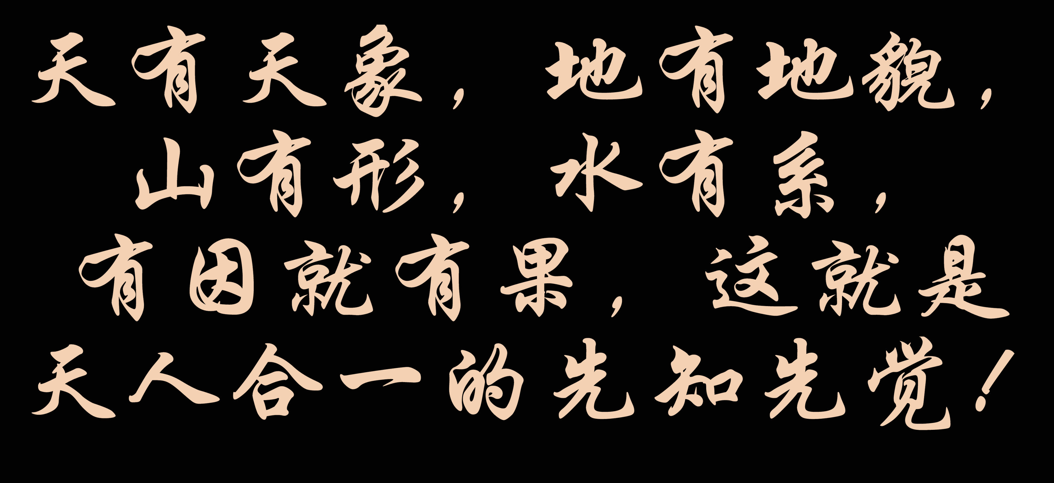 天有天象,地有地貌,山有形,水有系,有因就有果,這就是天人合一的先知先覺(jué)!