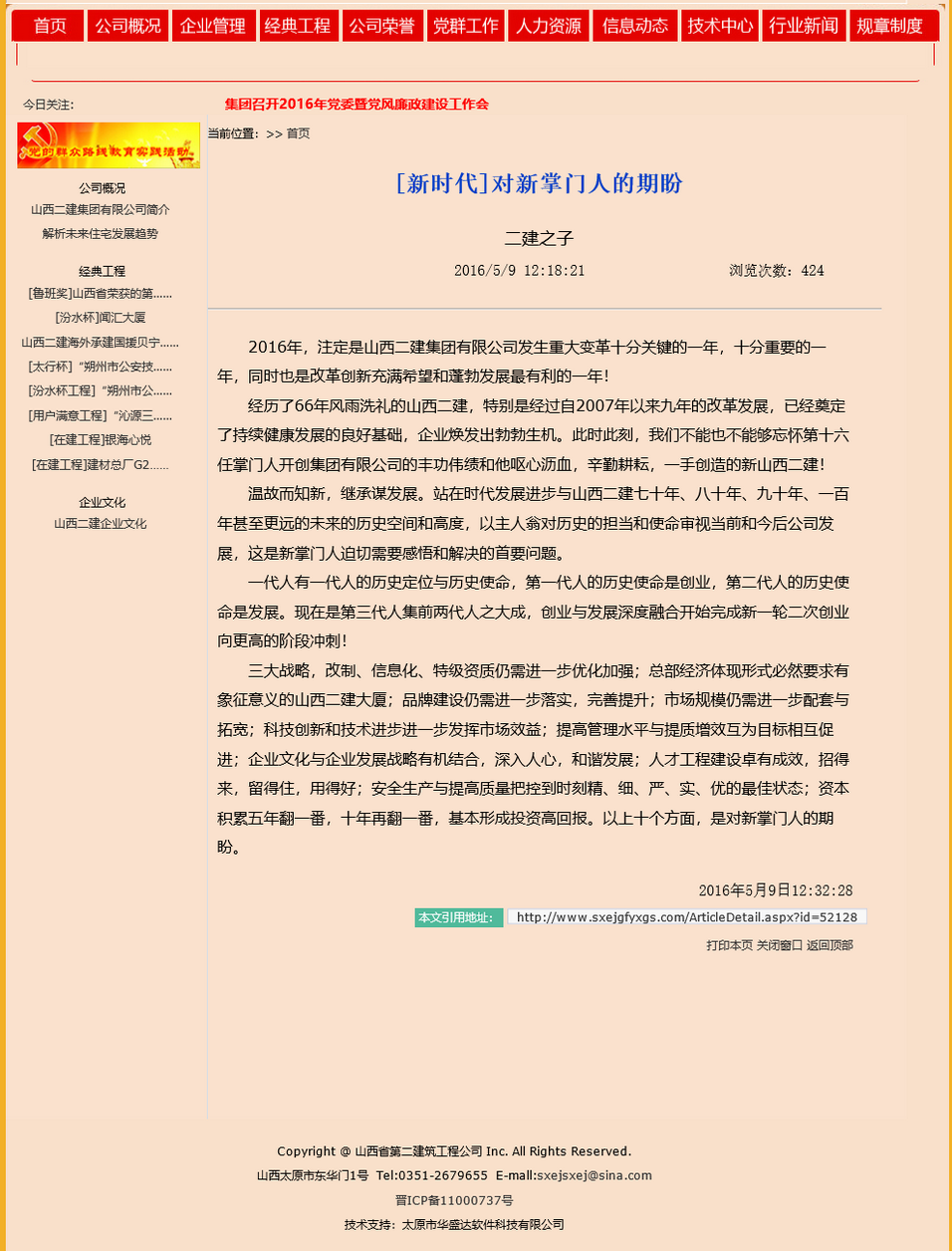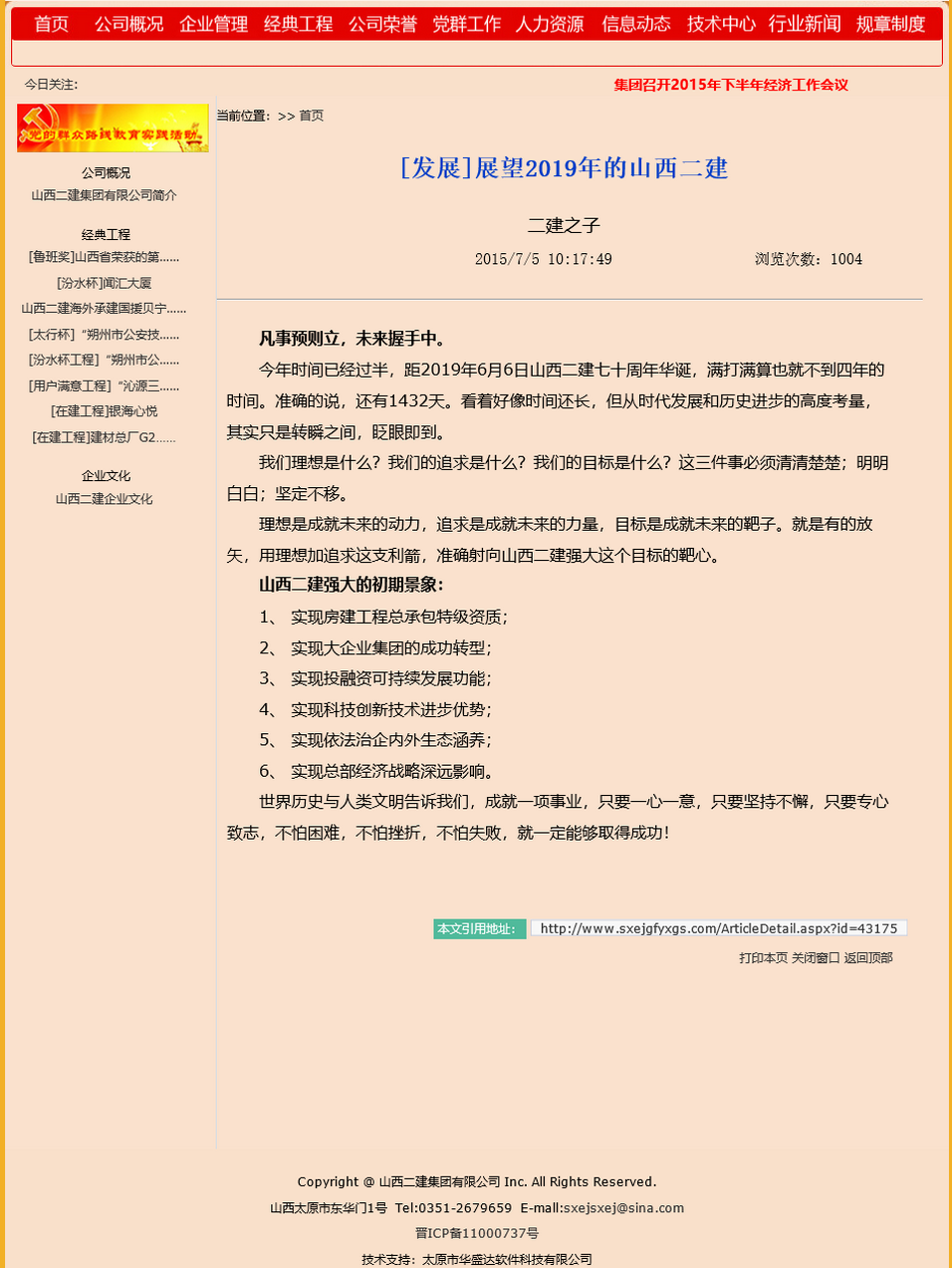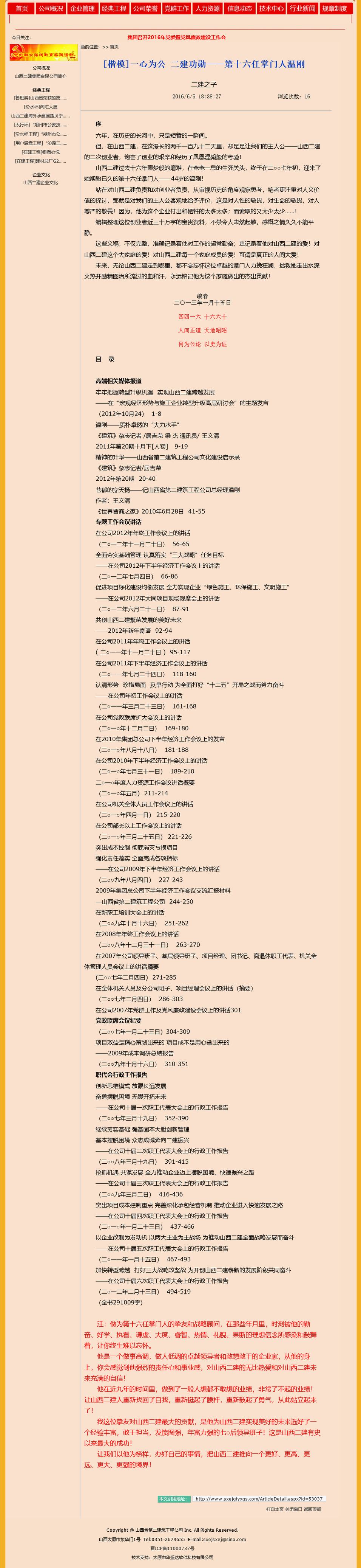 現(xiàn)在再一次閱讀,依然有現(xiàn)實(shí)和長(zhǎng)遠(yuǎn)的發(fā)展意義,那就是再一次創(chuàng)造山西二建的新奇跡!