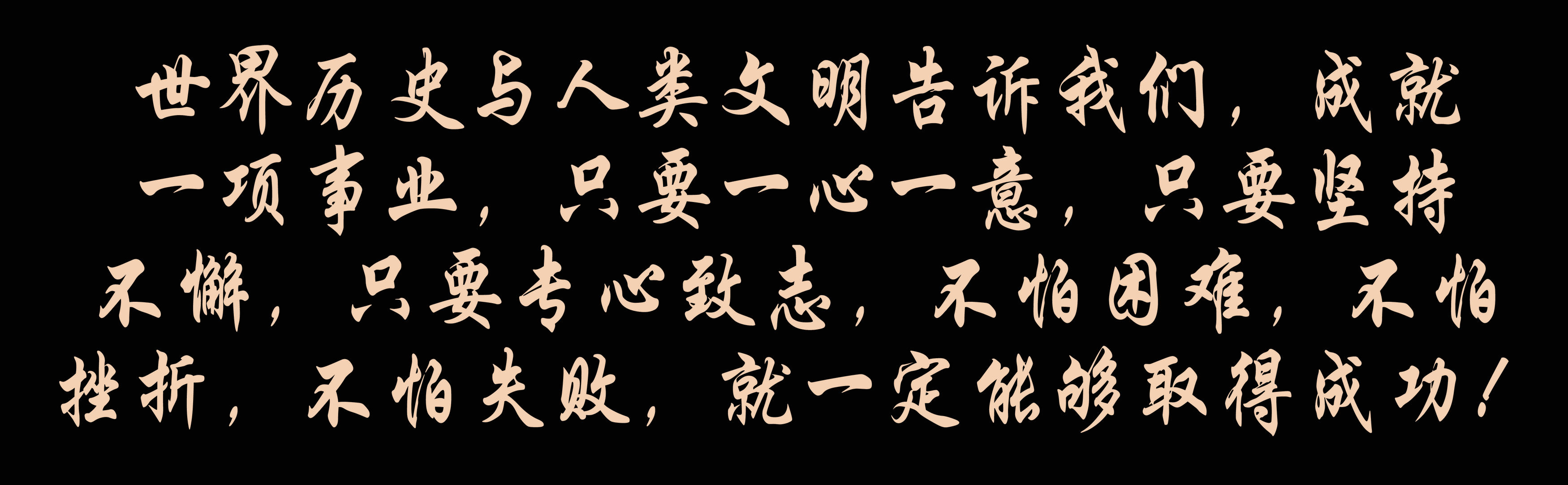 世界歷史與人類文明告訴我們,成就一項(xiàng)事業(yè),只要一心一意,只要堅(jiān)持不懈,只要專心致志,不怕困難,不怕挫折,不怕失敗,就一定能夠取得成功!